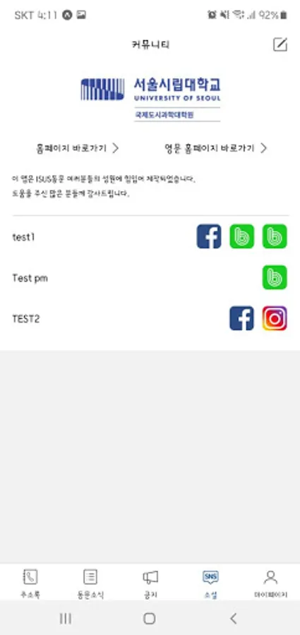Providing contact information between alumni of the University of Seoul International Graduate School of Urban Science, address book for providing SNS