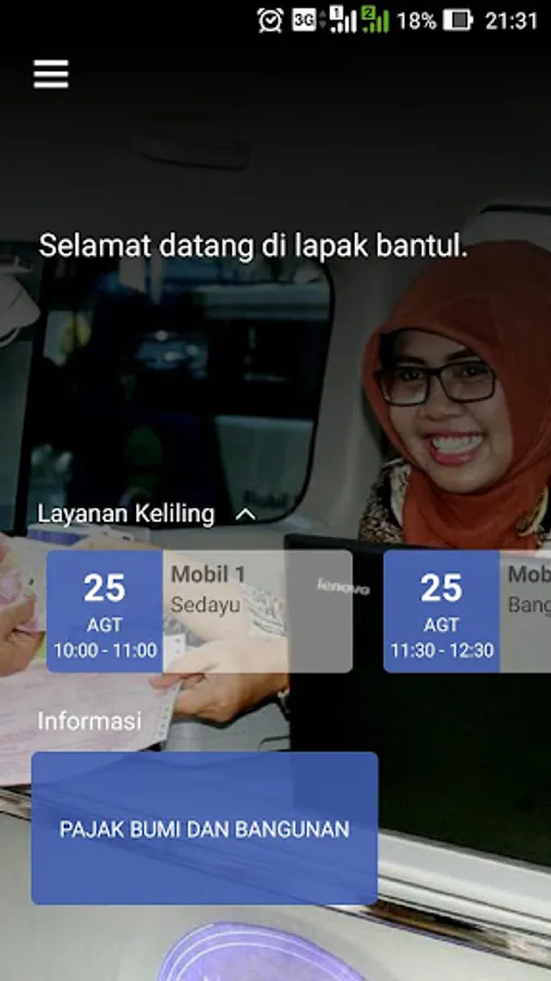 Bantul LAPAK is the Bantul Regency Regional Tax Information Service android application. PBB-P2 taxpayers can obtain information on SPPT payment history, object / taxpayer information, and mobile service schedules (mobile tax car).
