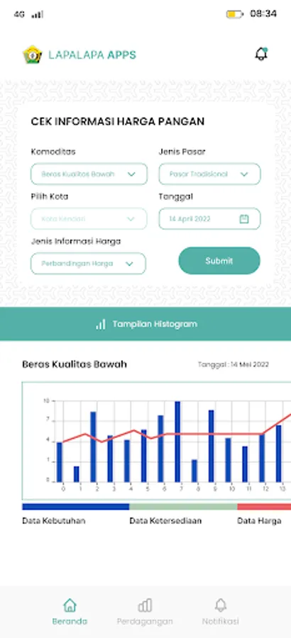 Lapalapa is an application that is used to monitor the movement of food prices and basic needs circulating in 17 (seventeen) regencies/cities throughout the province of Southeast Sulawesi.