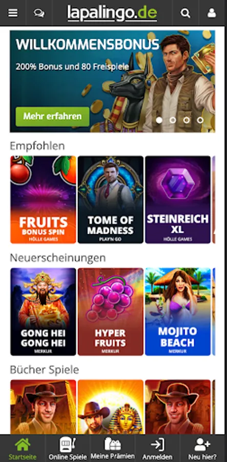 Attractive bonus offers: As a lapalingo.de player, you will be rewarded with generous bonus offers. From welcome bonuses to free spins to regular promotions, there is always something to make your gaming experience even more exciting. Keep an eye out for our latest offers and don't miss a chance to win extra prizes.