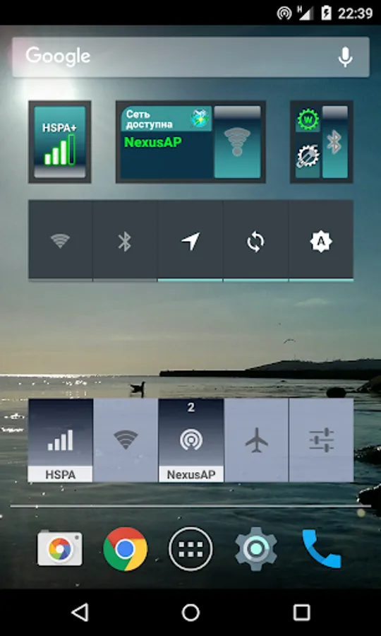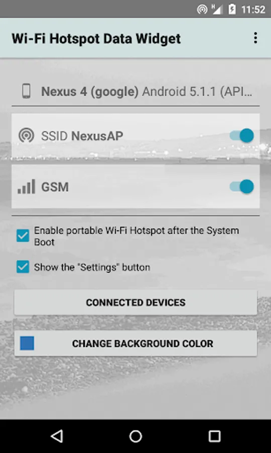 The widget intended to enable/disable Wi-Fi Hotspot and the monitoring the device adapters (Wi-Fi adapter, data transfer over cellular).