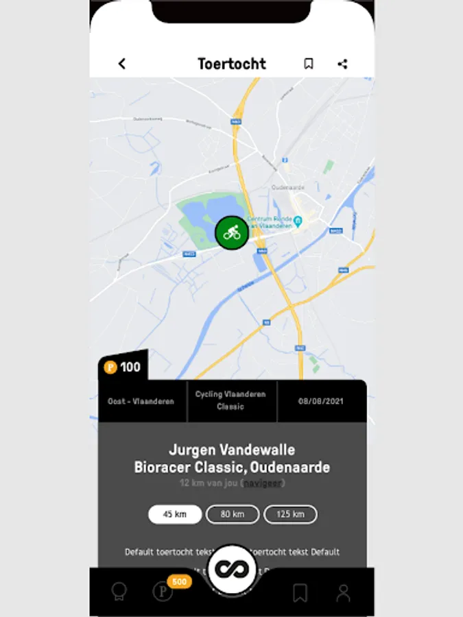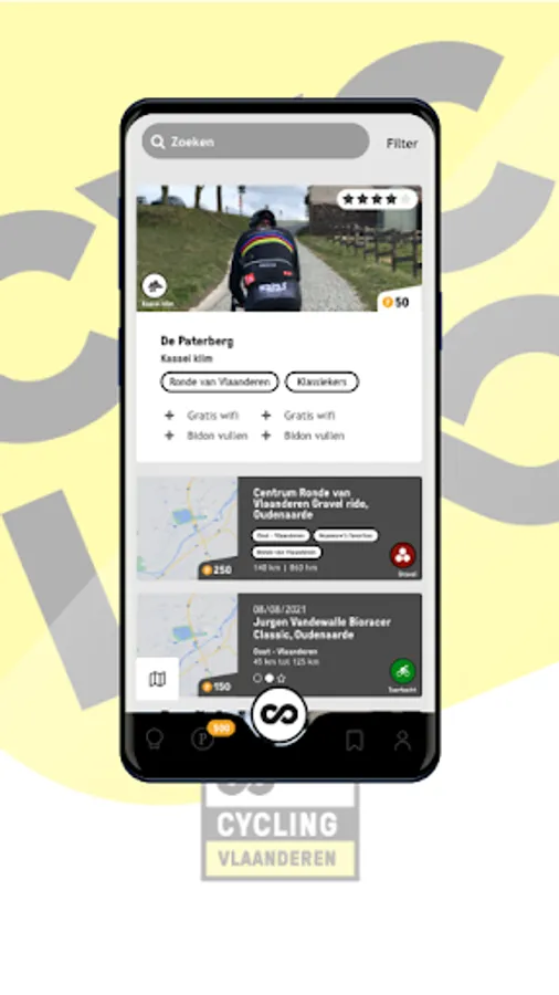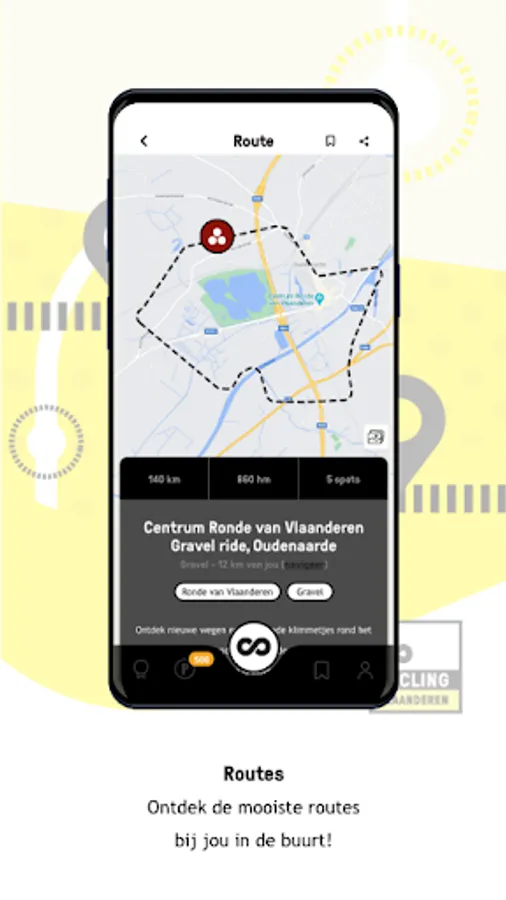 The Cycloo app shows the Flemish recreational cyclist the way to more experience on and off the bike. The app was developed by Cycling Vlaanderen, with the support of fuel supplier Esso.