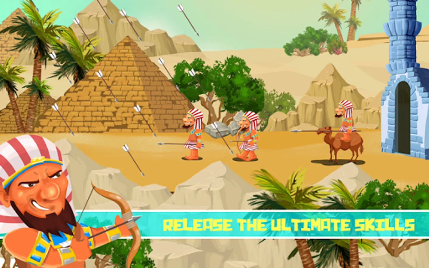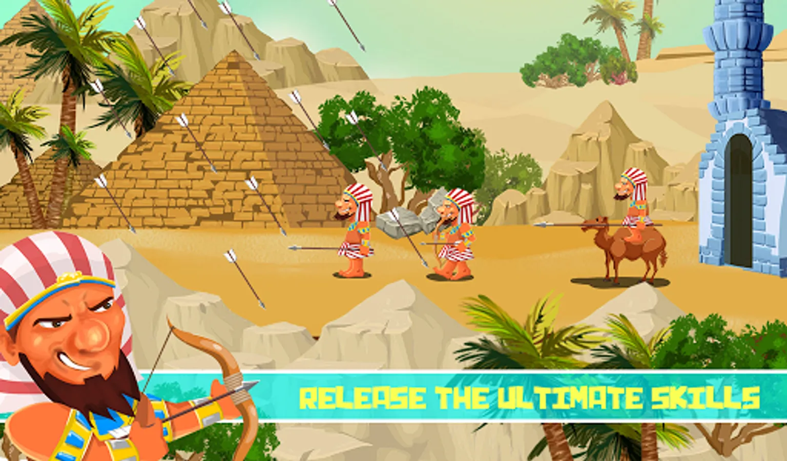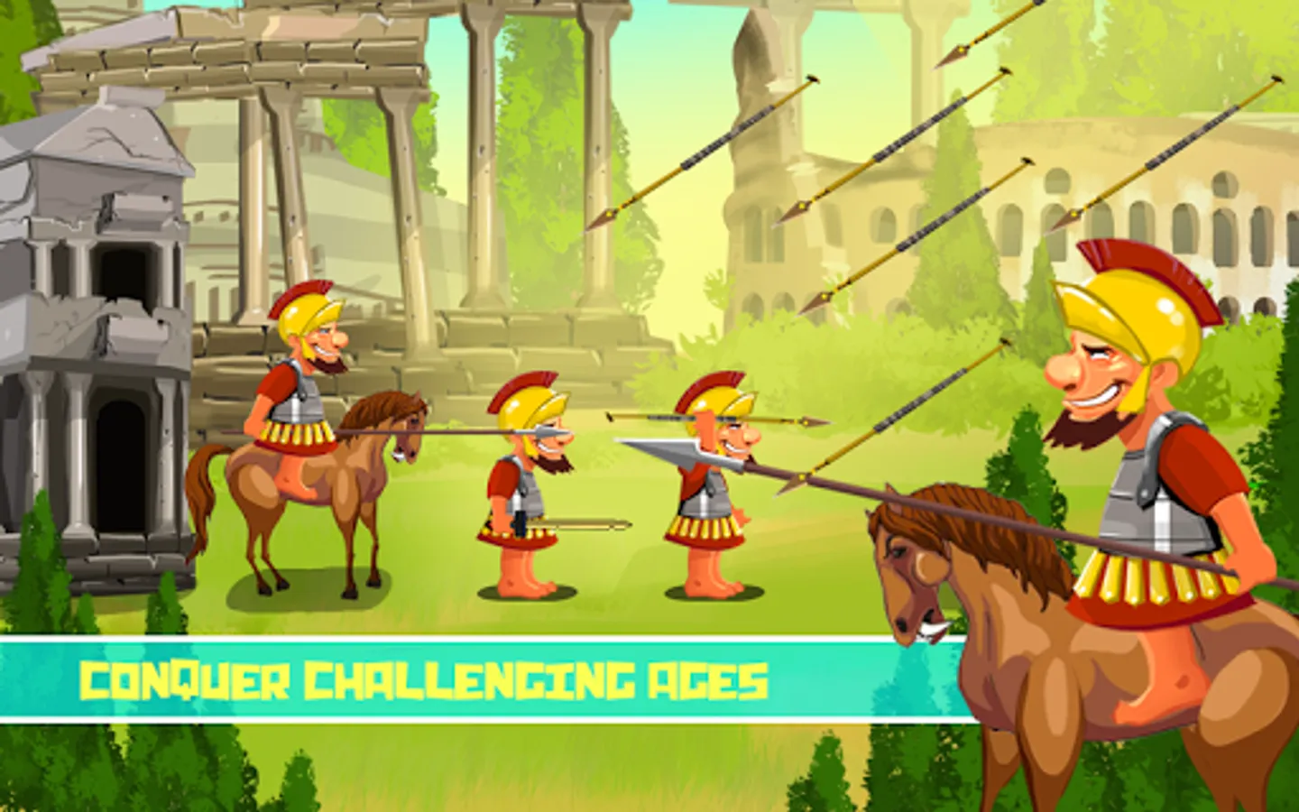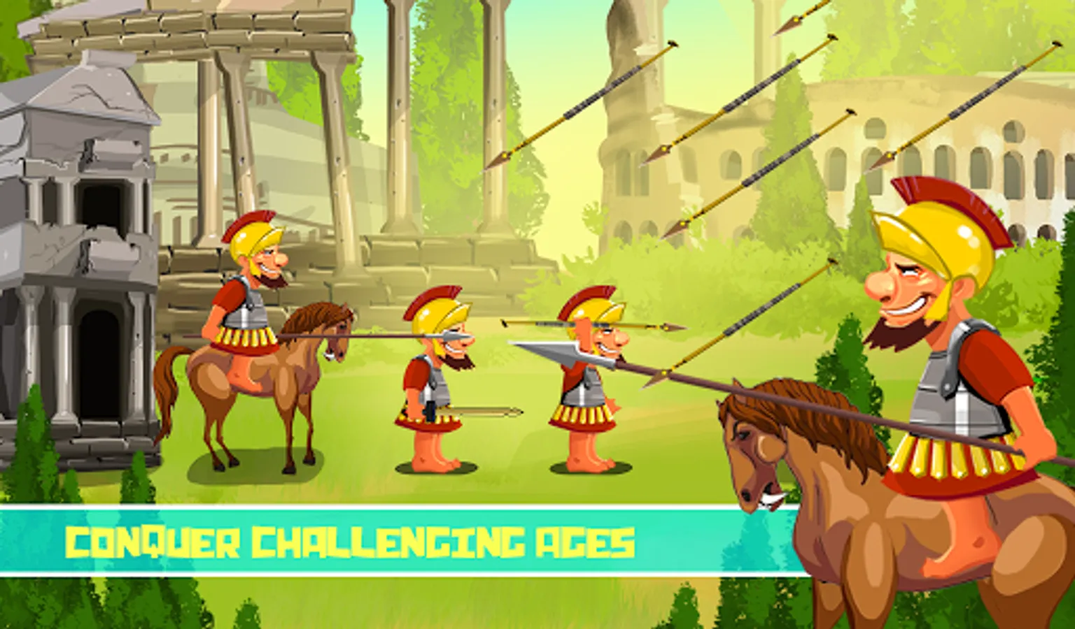 You will have to fight through the age from the Stone Age then evolve to Ancient Egypt, Ancient Roman, Present and the Future. For each age you will have a base to train three types of soldier. You also have three types of turret to build to protect your base too. Especially, each age has one special skill to attack the enemy.