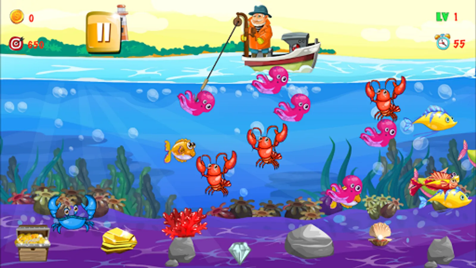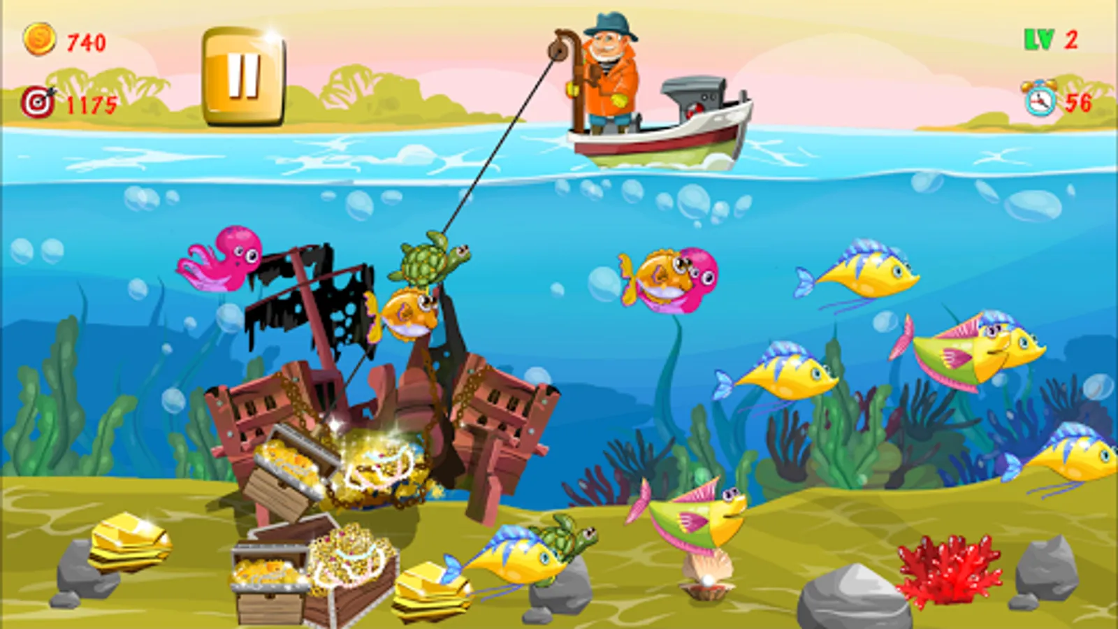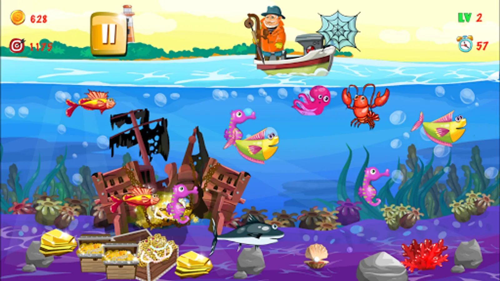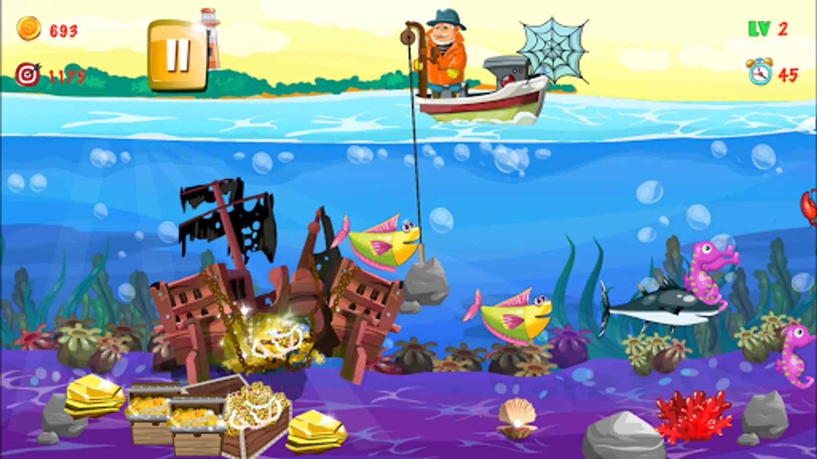 Fishing, gold miner, gold rush is a very simple game, but requires you have the dexterity to hit the fish are swimming raven, sometimes you get the shipwreck containing plenty of Gold, Diamonds, Gems and Treasures, your duties is to catch fish and gold as much as possible to be able to pass level goal.