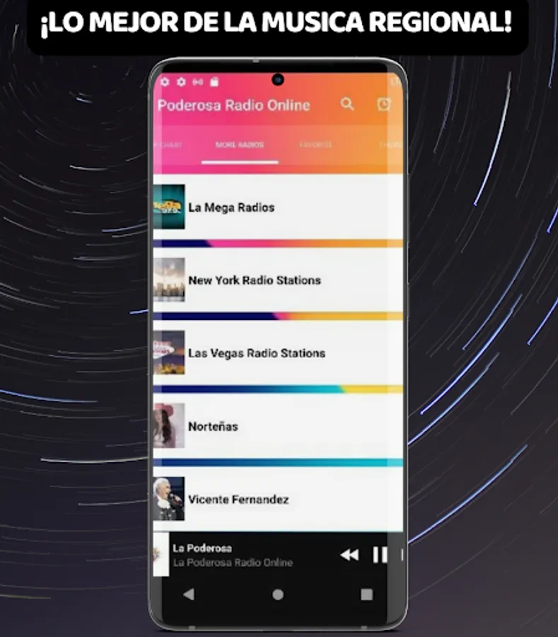 Download our new application La Poderosa Radio Online, enjoy the best application where you can listen to your favorite radio station, La Poderosa, as well as a lot of regional music. Listen to the best hits in our new free application La Poderosa Radio Online.