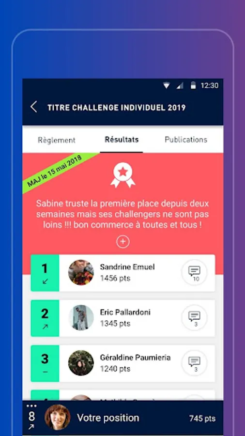 - follow the results of your individual and team challenges