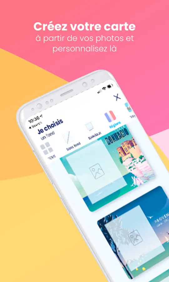 -Background: Choose the theme of your postcard. Several fund collections are available: birth, birthday, fauna & flora, summer, Valentine's Day...