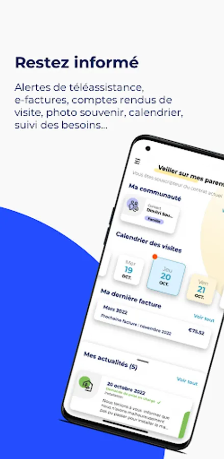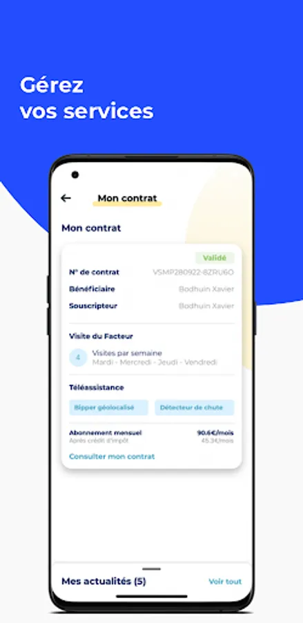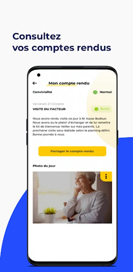 Do you or one of your relatives benefit from the Teleassistance and/or Postman's Visit service from Veille sur ma parents? Thanks to the new free mobile application of Watching over my parents, follow and manage the services with ease!
