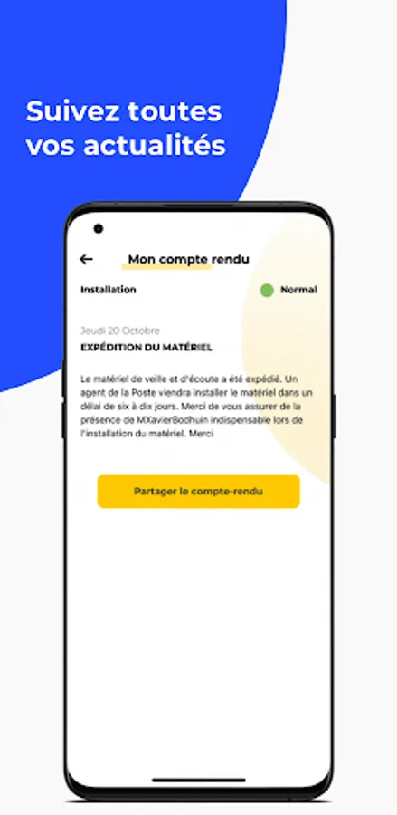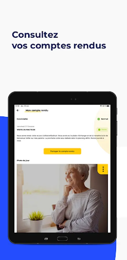 Simply download the application and log in using your La Poste Account. If you don't have an account yet, create one in a few clicks from the Veiller sur mes parents app or online at www.laposte.fr.