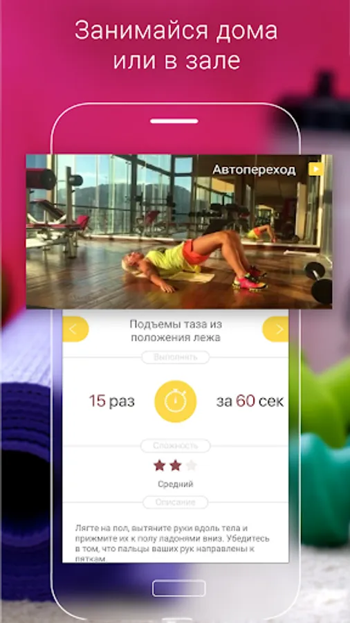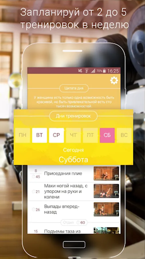 By installing the application, enter your settings and purpose, and you will be offered a suitable load level. You can take from 2 to 5 times a week, as scheduled.