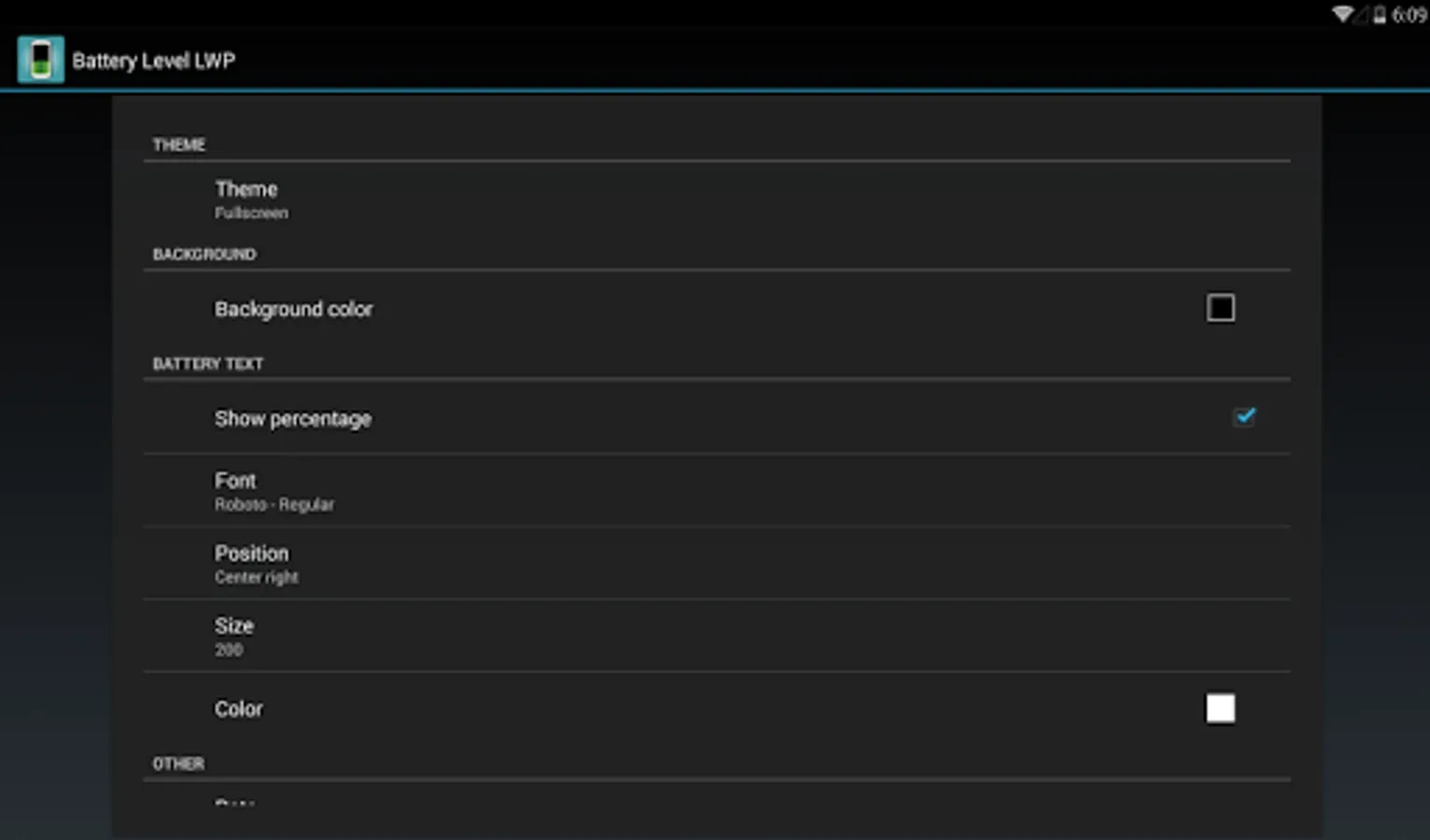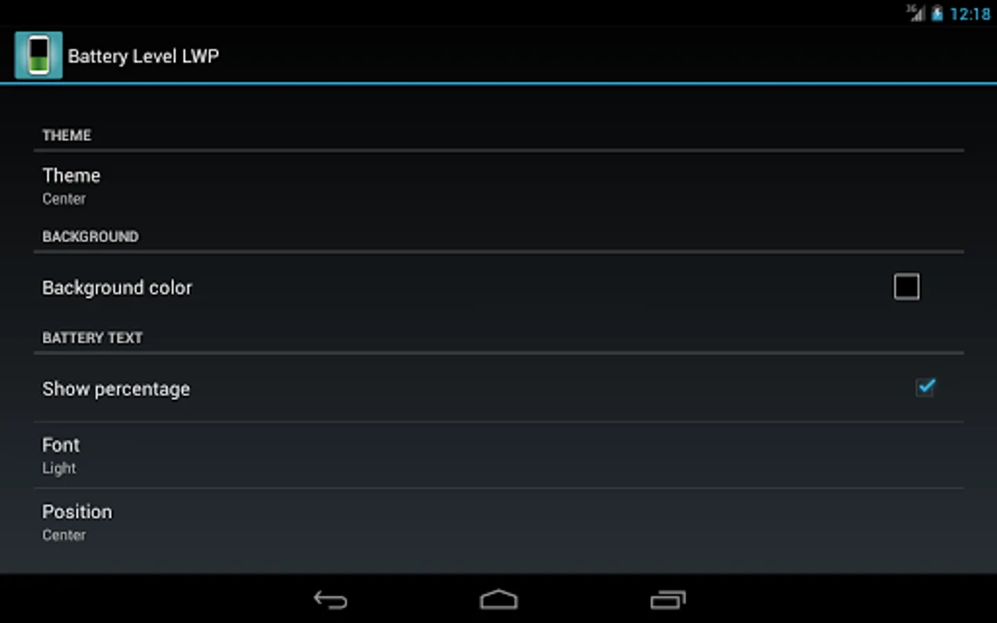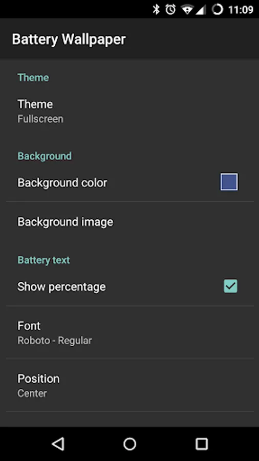 There is also an option that allows to change the background color and image of the Battery Wallpaper.