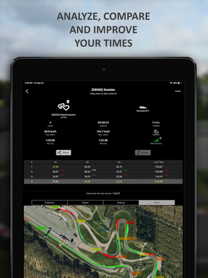 ∙ LapTrophy uses your GPS location to calculate lap times and sectors with the highest accuracy