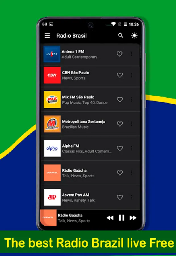 We present you our Live Brazil AM and FM Radio App, created in a totally different way, so that you can enjoy your Brazilian FM and AM radio live, anywhere in the world.