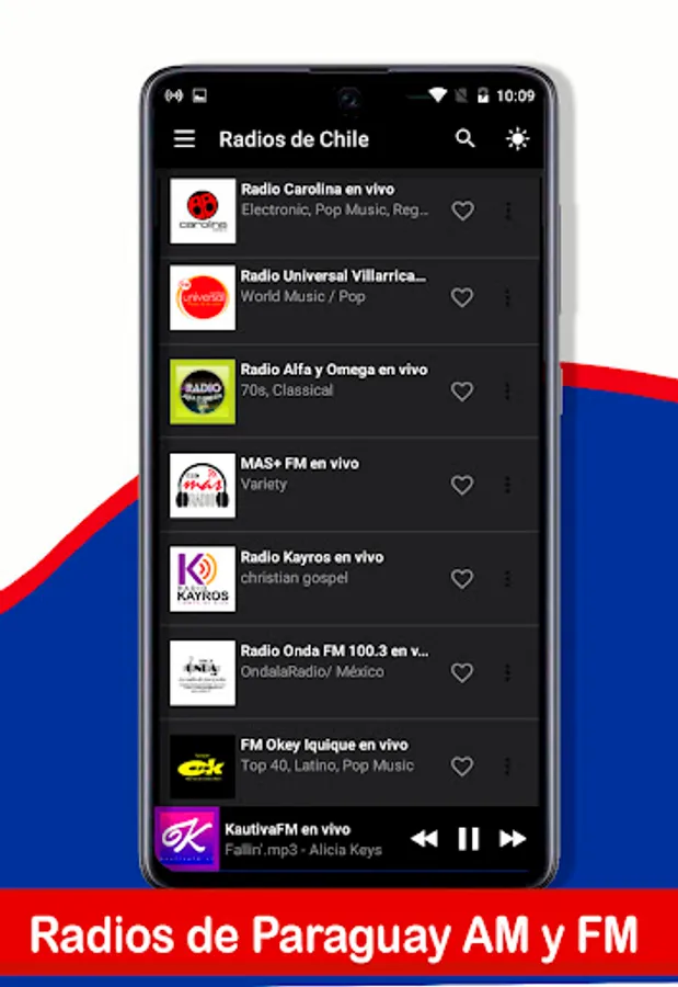 In Radios de Chile AM and FM live you can listen to your artists with their complete discography, see the lyrics of the songs and add them to your personalized Favorite, which will be available whenever you want, you will enjoy adding very easy, online chile radios AM and FM