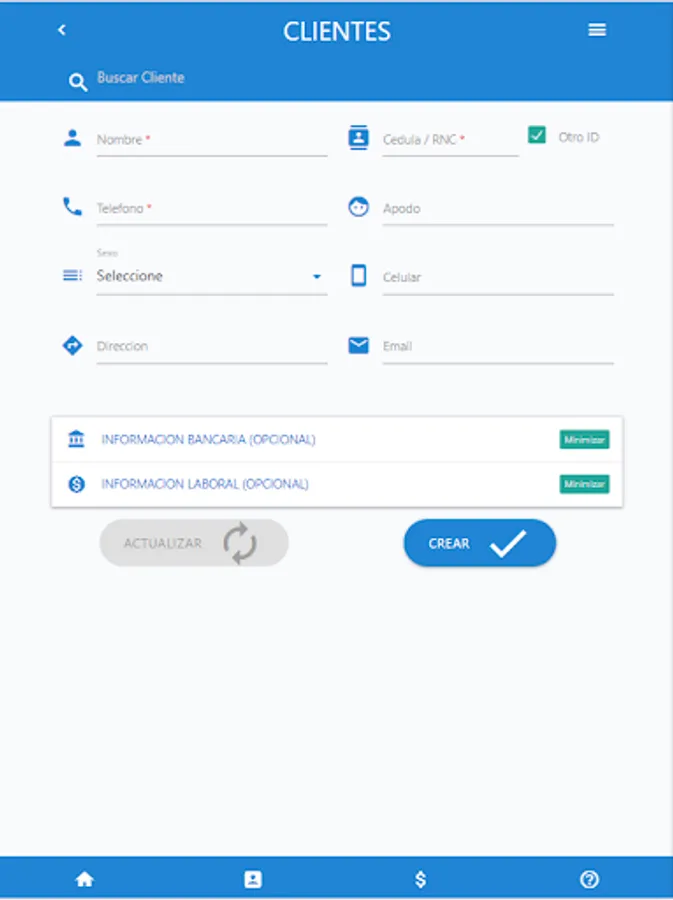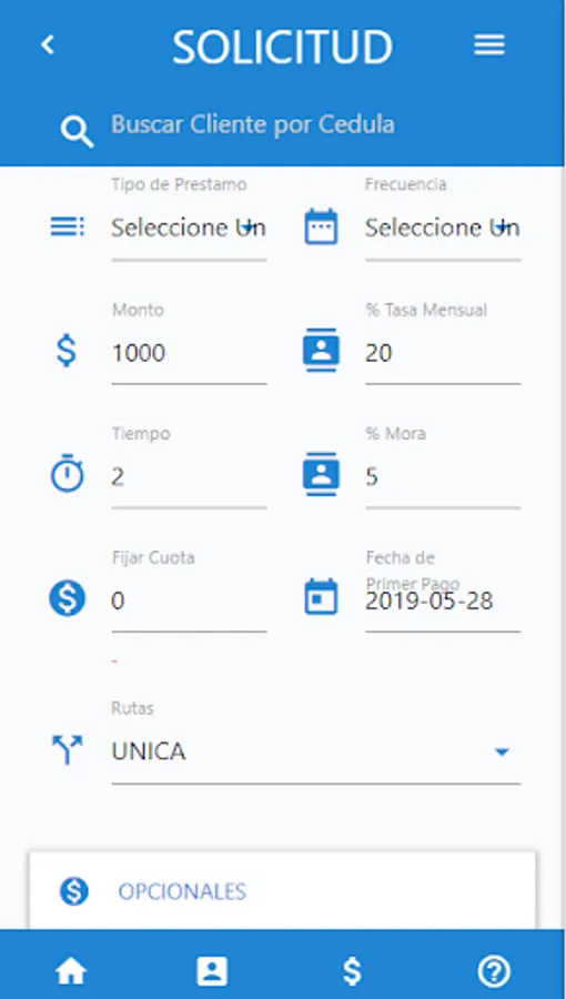 Control all types of loans and manage routes, clients, employees, branches, cash, expenses, profiles, balance, re-hooks, Interest and reports. We provide you with a Dominican ID validator and document management. You can use GPS geolocation and dynamic filters, and save financial and employment information.