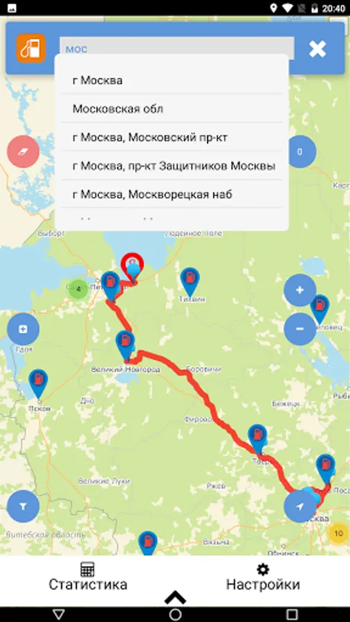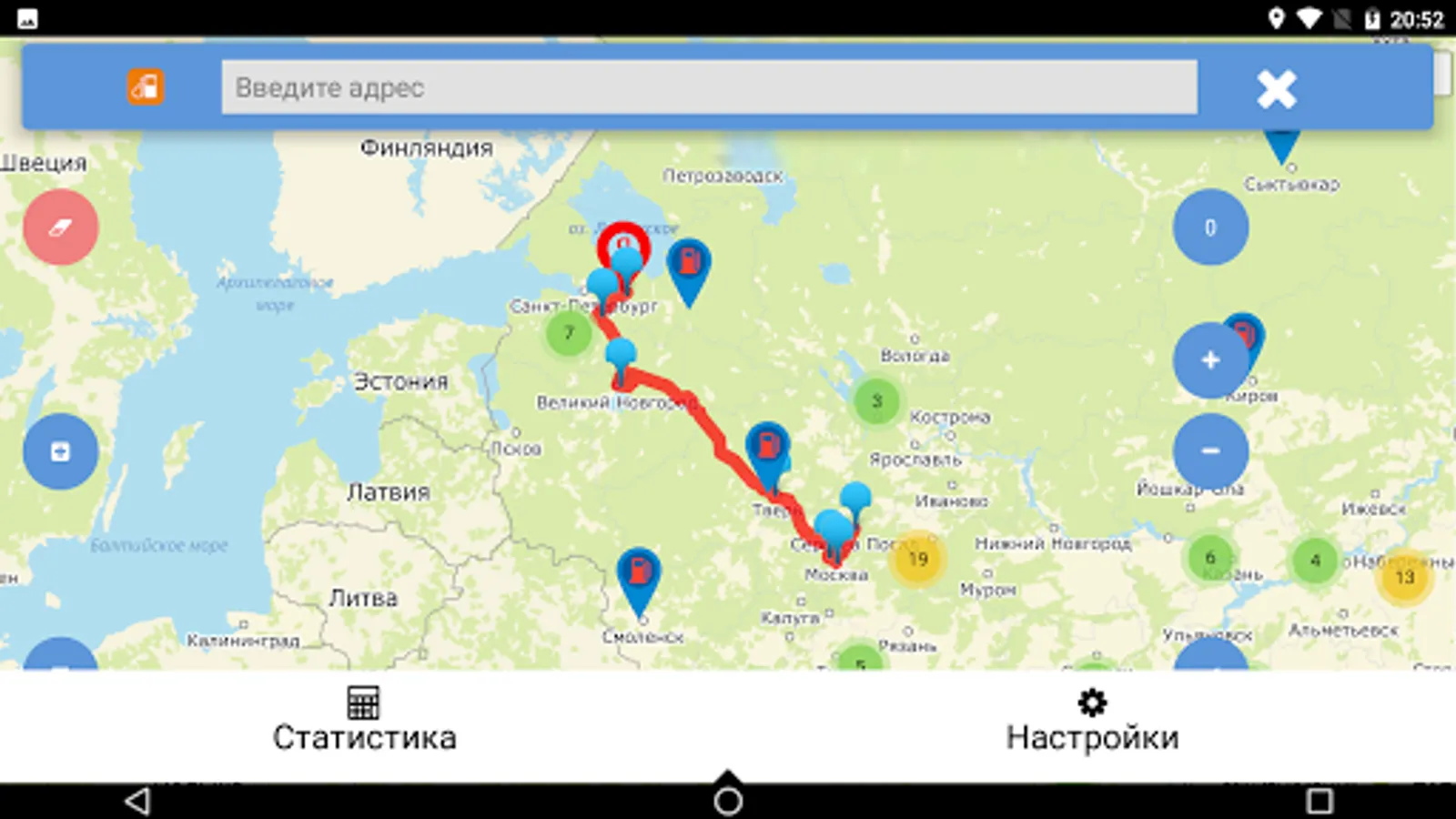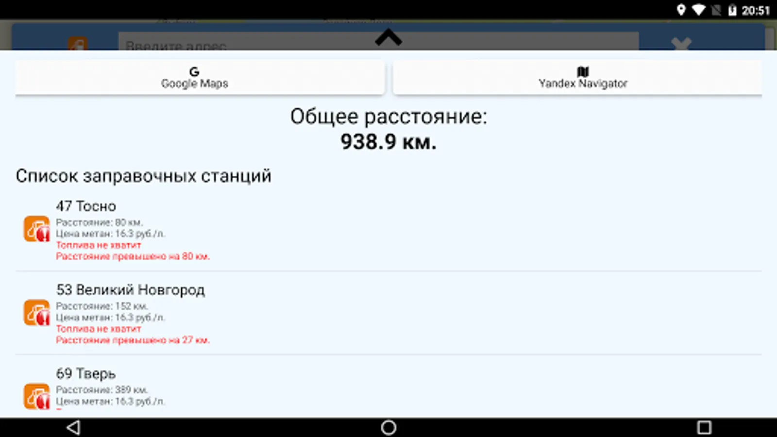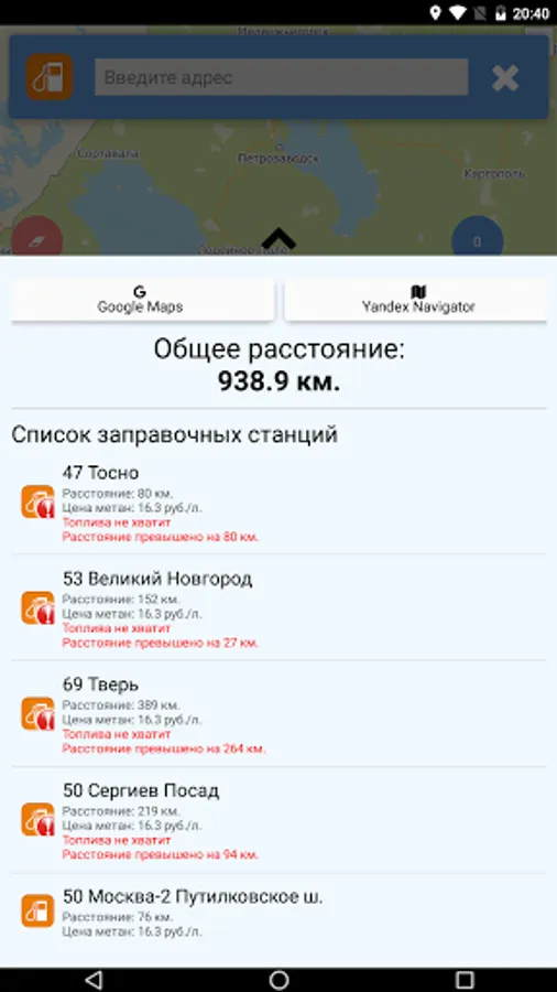 - Lay a route from associated gas stations, taking into account the gas capacity in the tank and the minimum deviation from the route.