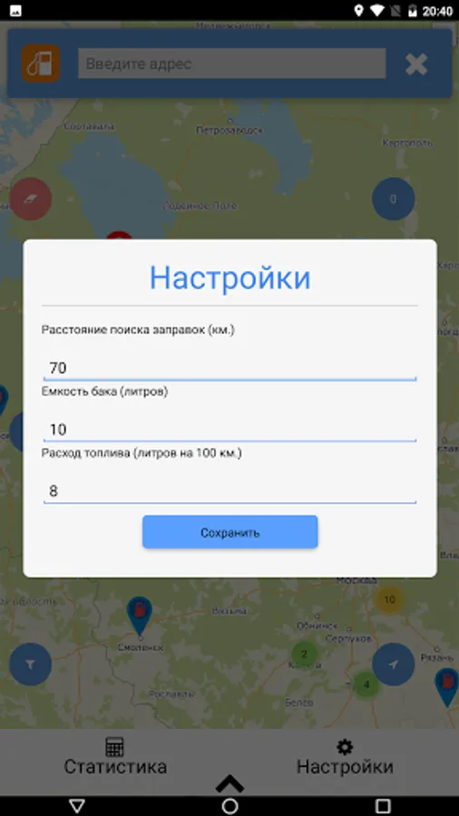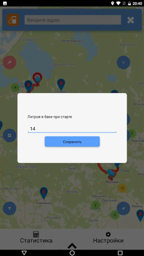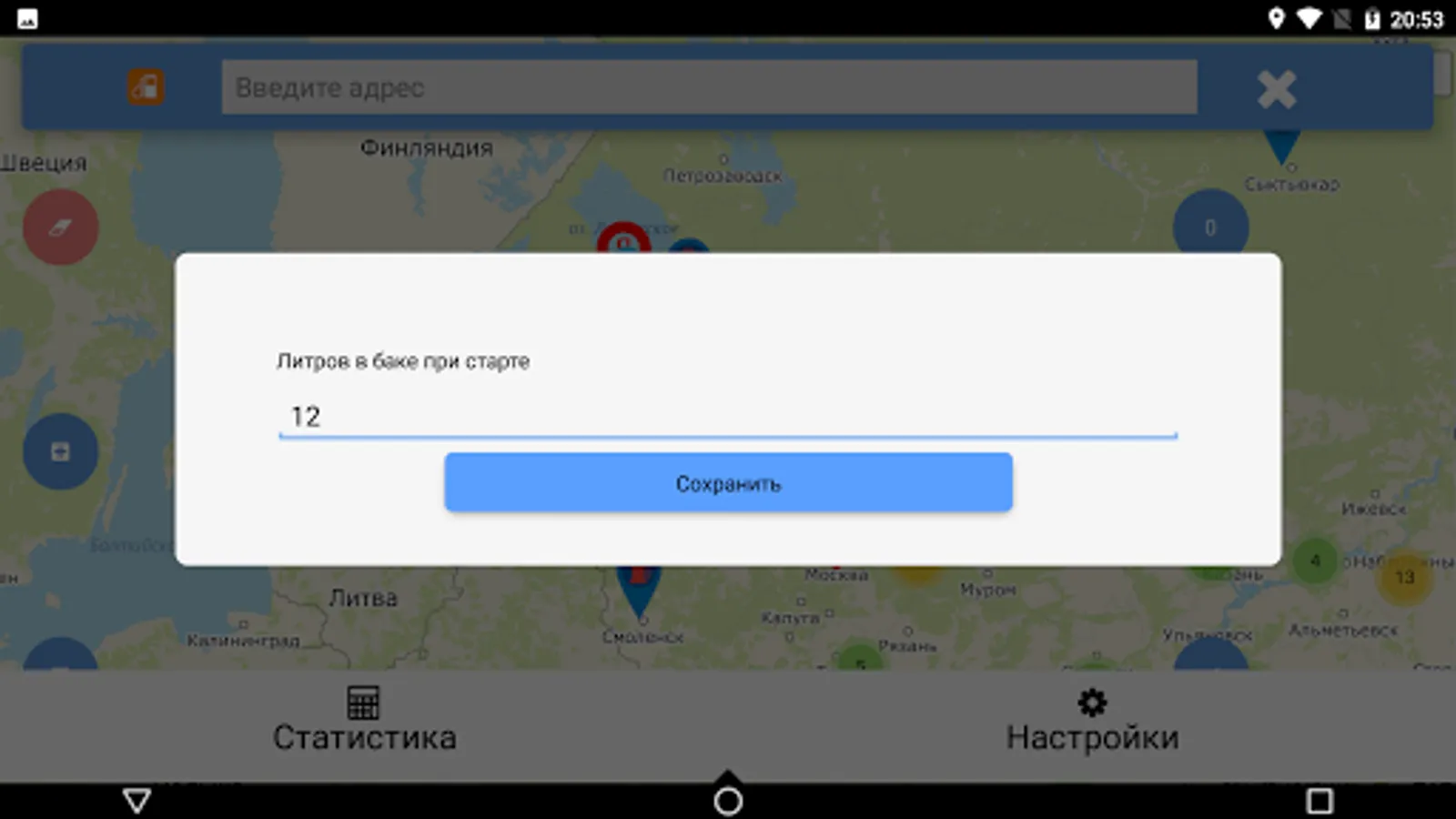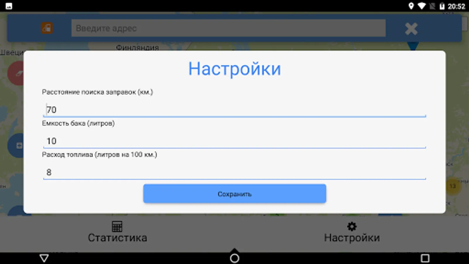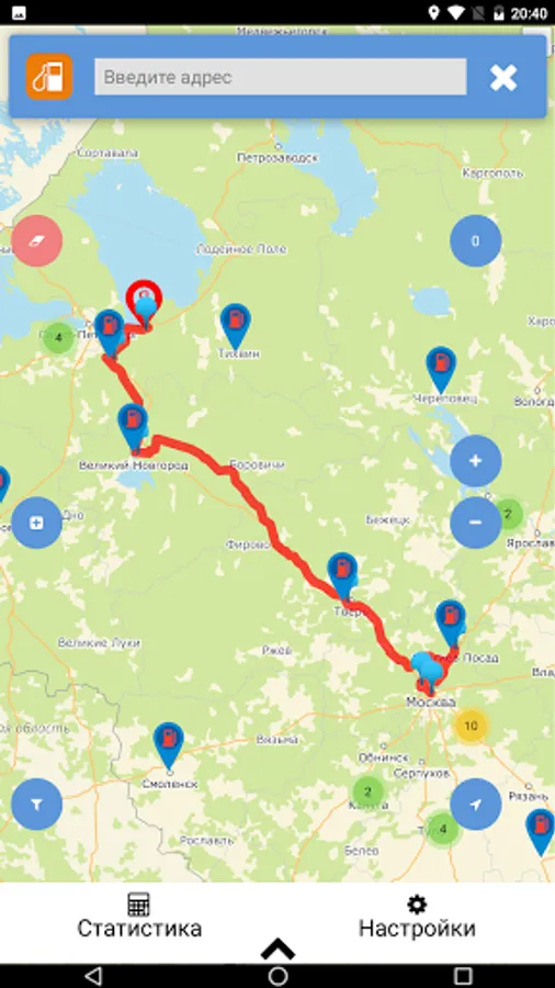 - Lay a route from associated gas stations, taking into account the gas capacity in the tank and the minimum deviation from the route.
