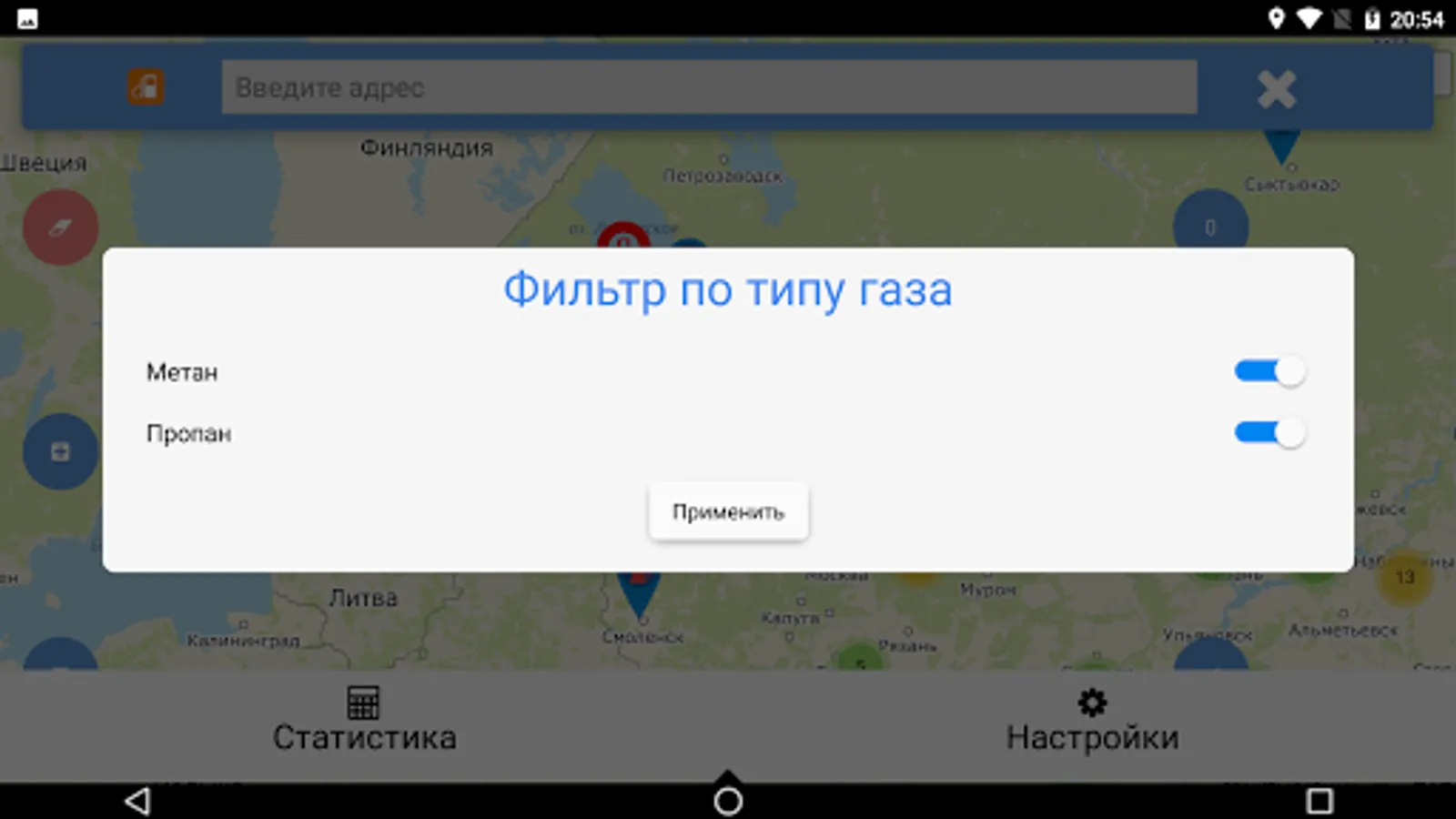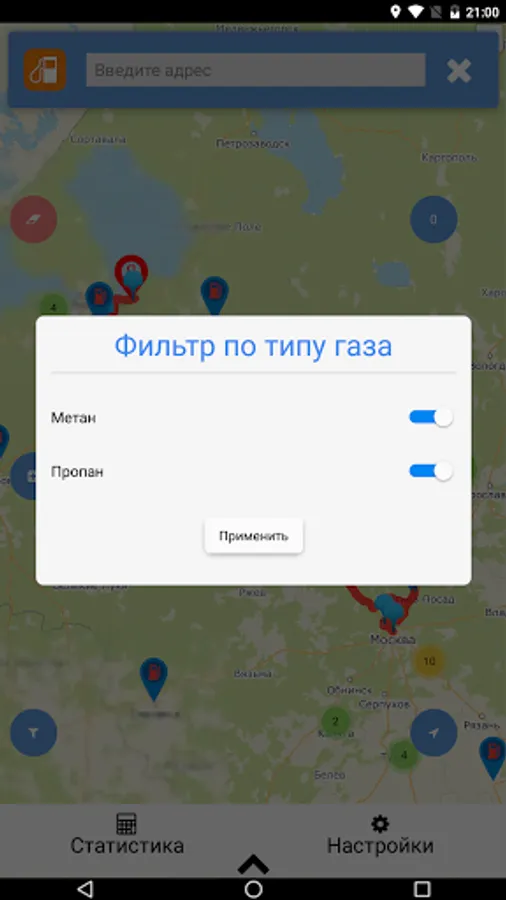 Application for the search for gas filling stations and CNG filling stations (methane and propane).