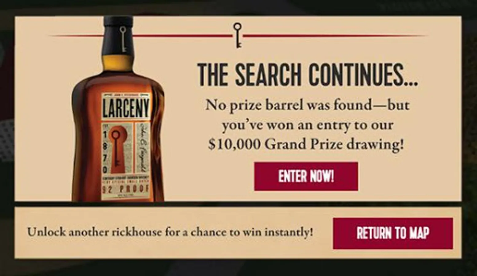 o Every day brings new chances to win. So what are you waiting for? Download now and begin your search for exclusive Larceny Bourbon prizes.