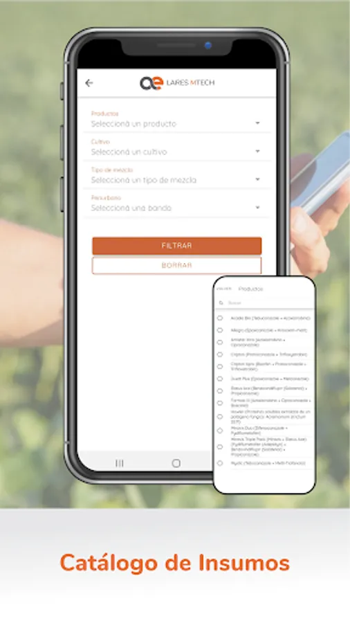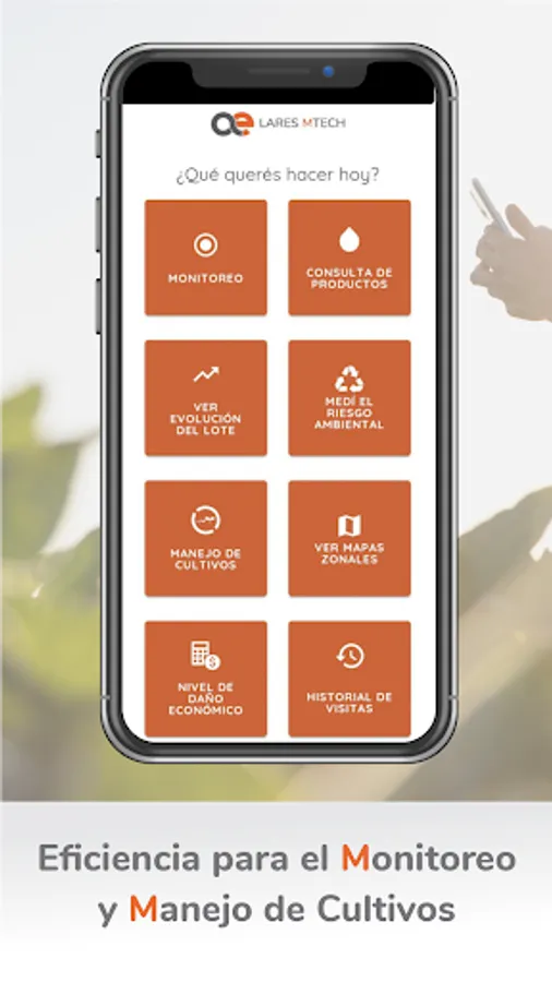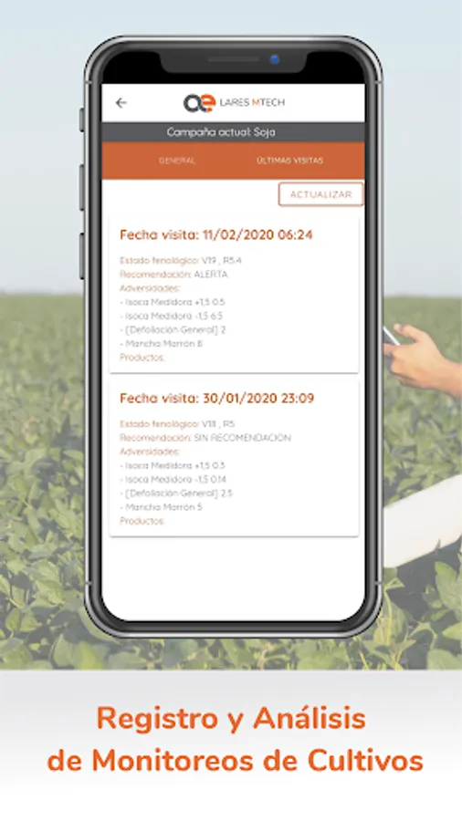 Lares MTech is an intelligent system for the collection, registration and analysis of field monitoring that contributes comprehensively to decision-making for managing and controlling adversities in extensive crops.