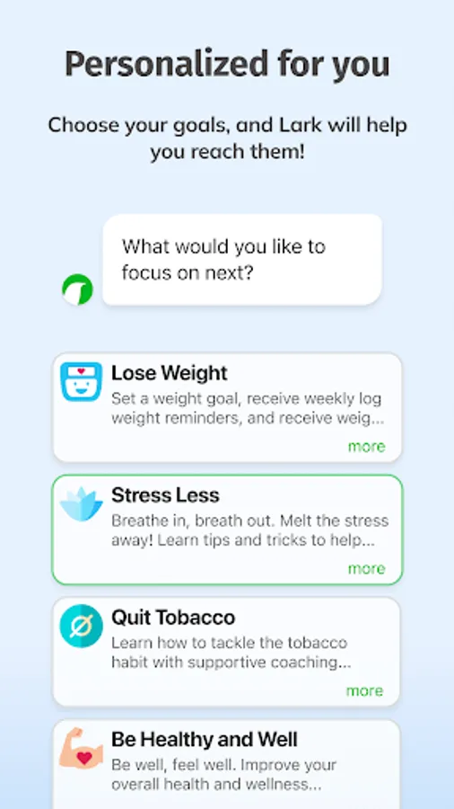 Lark is a friendly text-based coach that can help you reach your health goals, providing you with personalized advice for losing weight, managing diabetes, lowering blood pressure, reducing stress, getting more active, and eating better. With this all available 24/7 right on your smartphone, Lark is with you every step of the way. And it doesn’t cost you a thing!