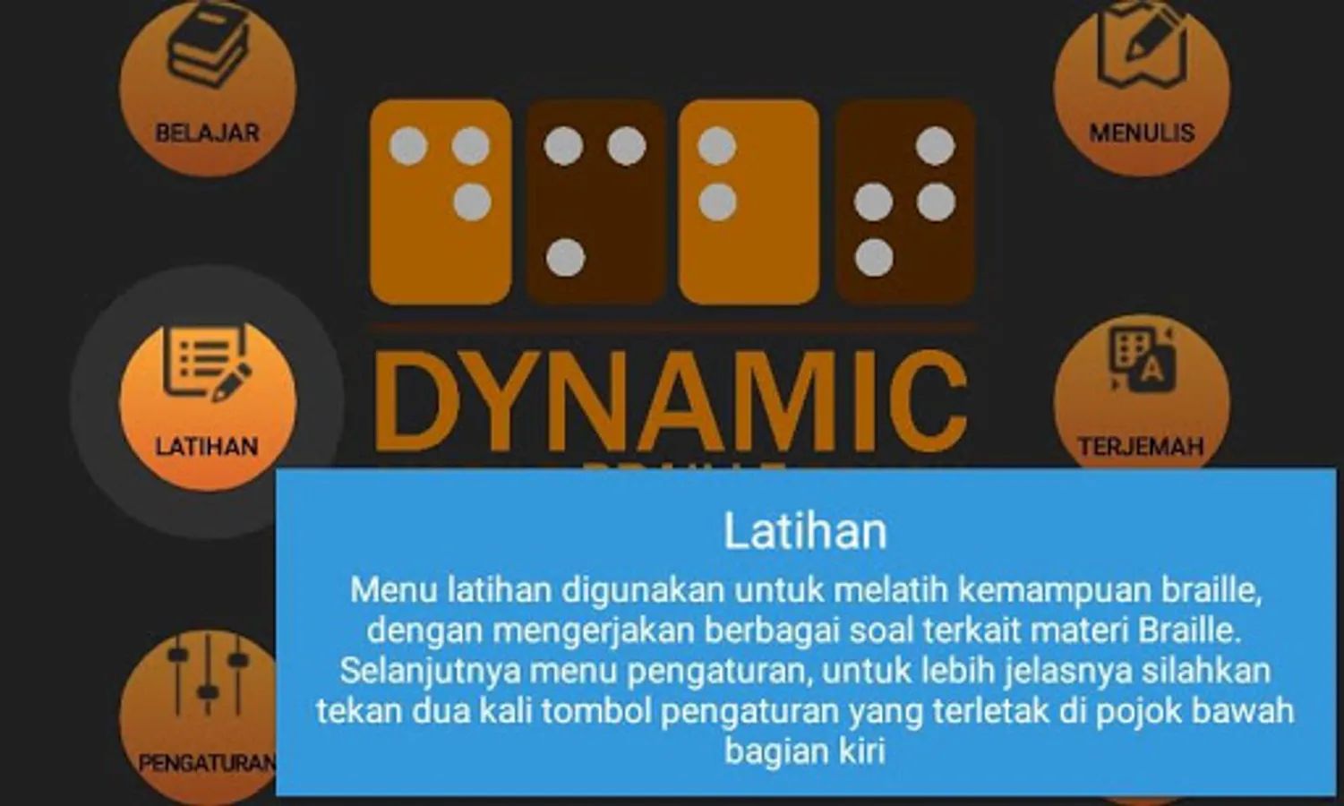 Braille Reading and Learning Application for Blindness. Seven main menus in the DMBT application