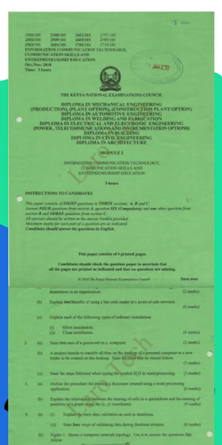 Entrepreneurship Past Papers for Diploma in Electrical & Electronic Engineering(DEE) Power Option.