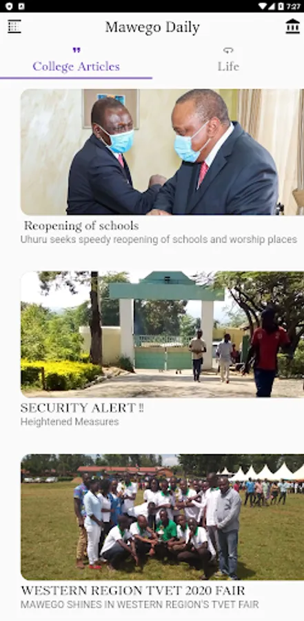 Mawego Daily tries to amend the tumult involved when students get the information too late and also help to advertise the schools' general performance to the world.