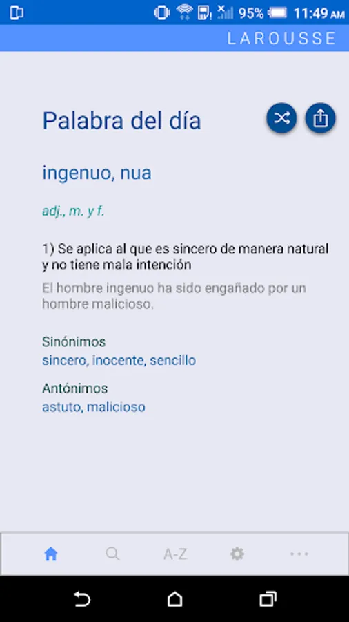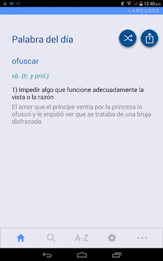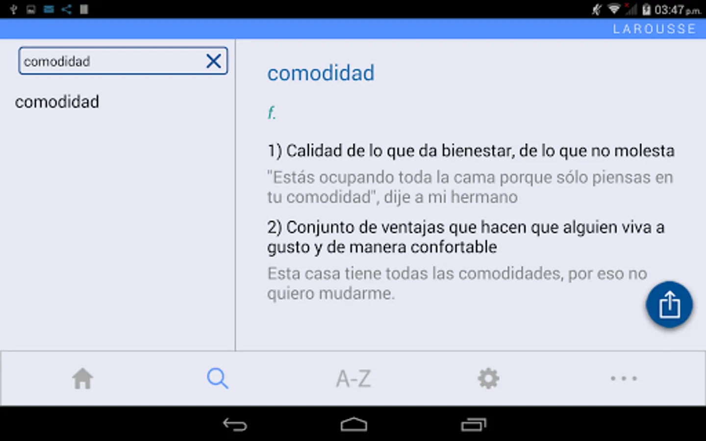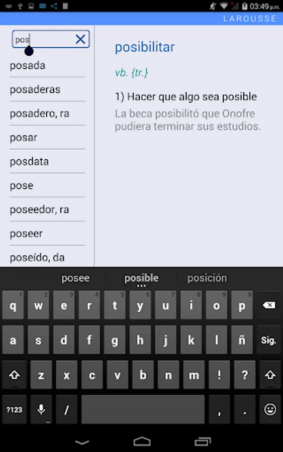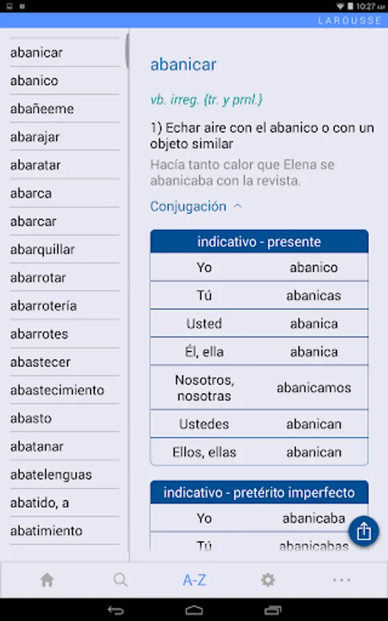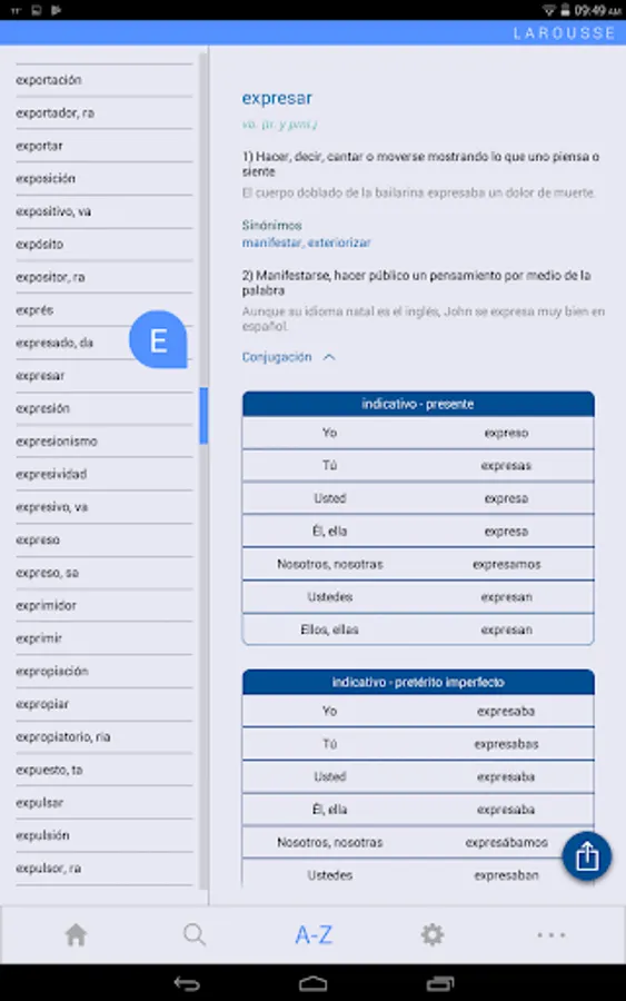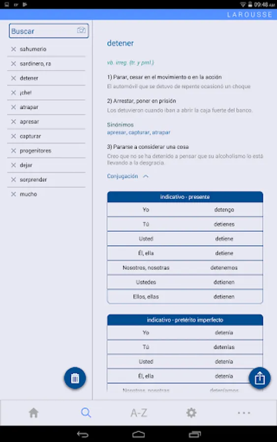 With the Advanced Dictionary Spanish Larousse on your mobile device, you can enjoy a spacious modern vocabulary and interactive entries that allow searches and verb conjugations. This application covers more than 100 000 definitions of about 40 000 entries in Spanish. The application includes: