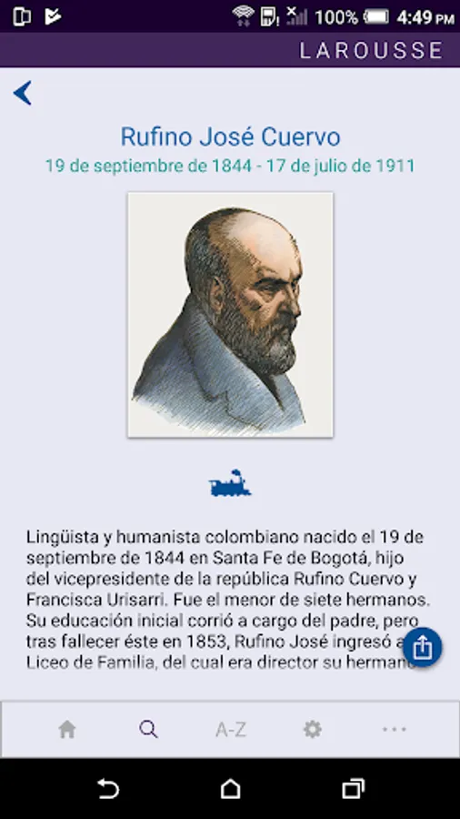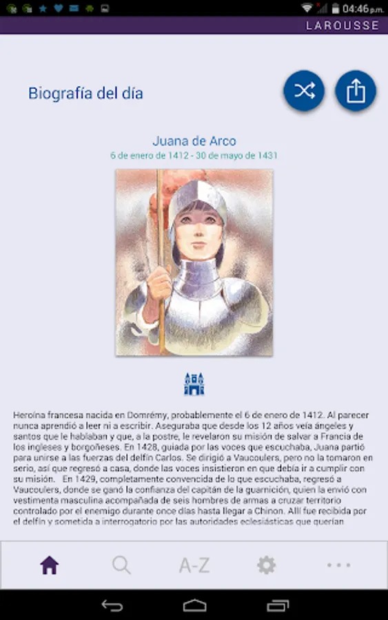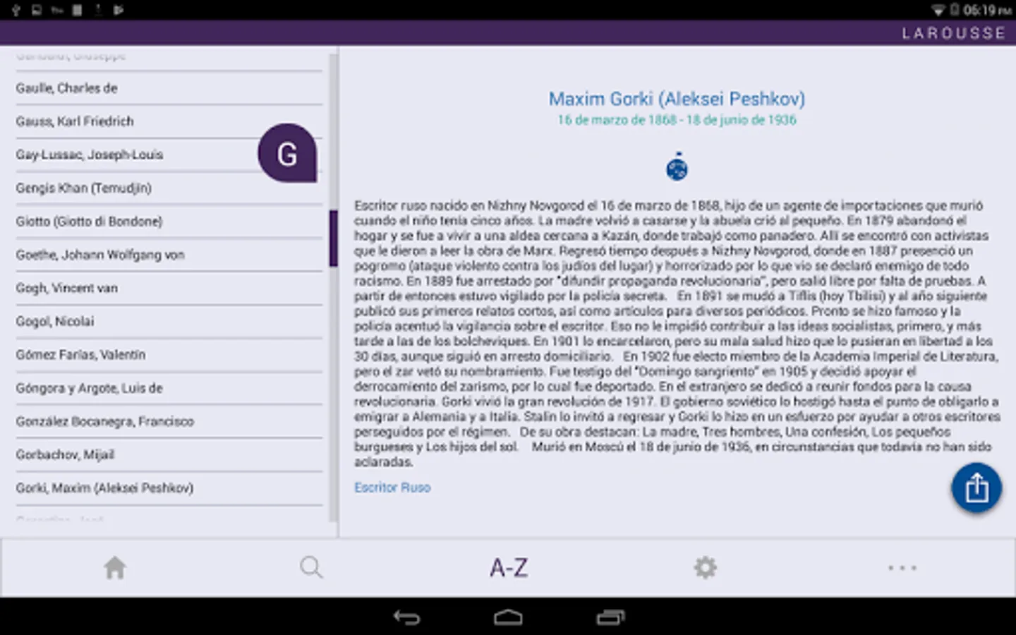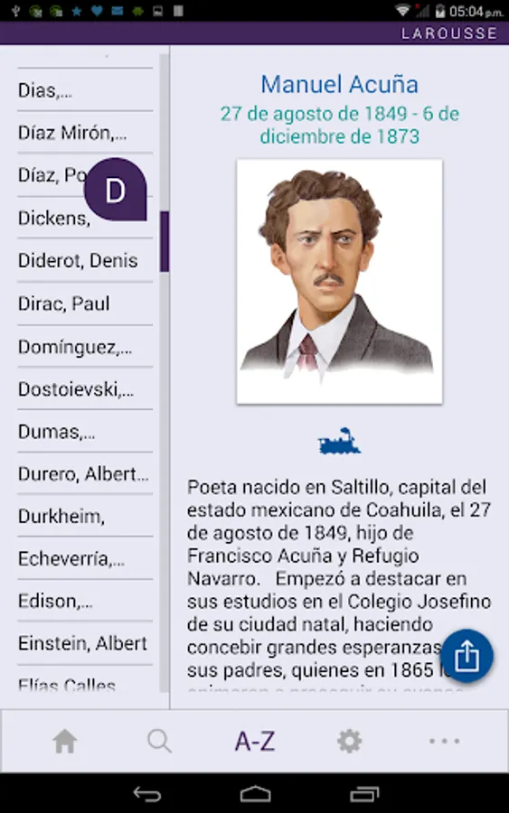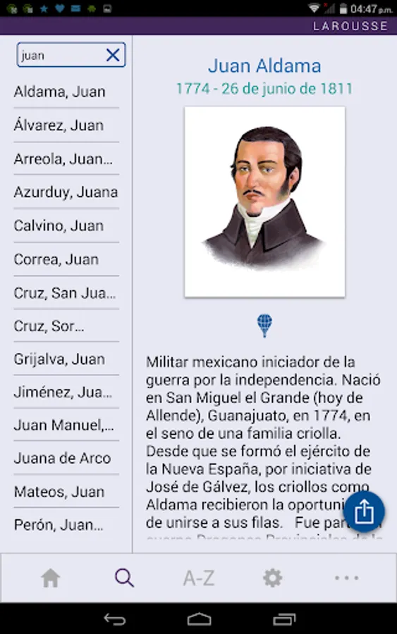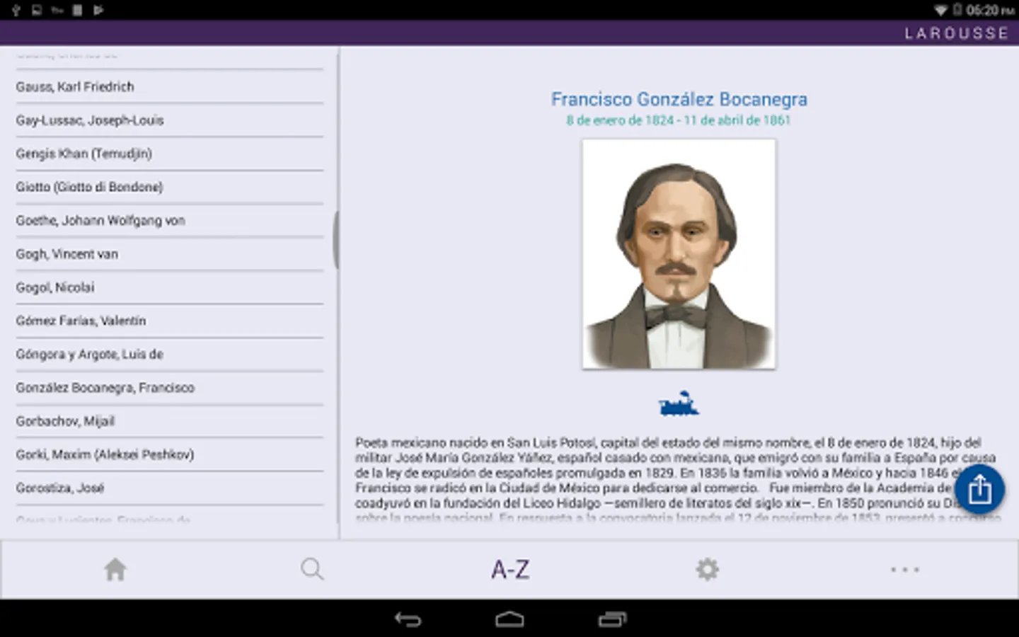 With Biographies Larousse dictionary on your mobile device, you can access the essential information of the life and work of the most prominent historical figures in Mexico and the world every schoolchild should know. More than 500 biographies and portraits 250. The application includes: