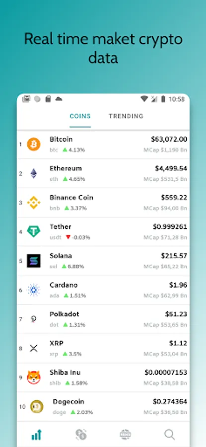 ·Track over thousands of cryptocurrency in seconds