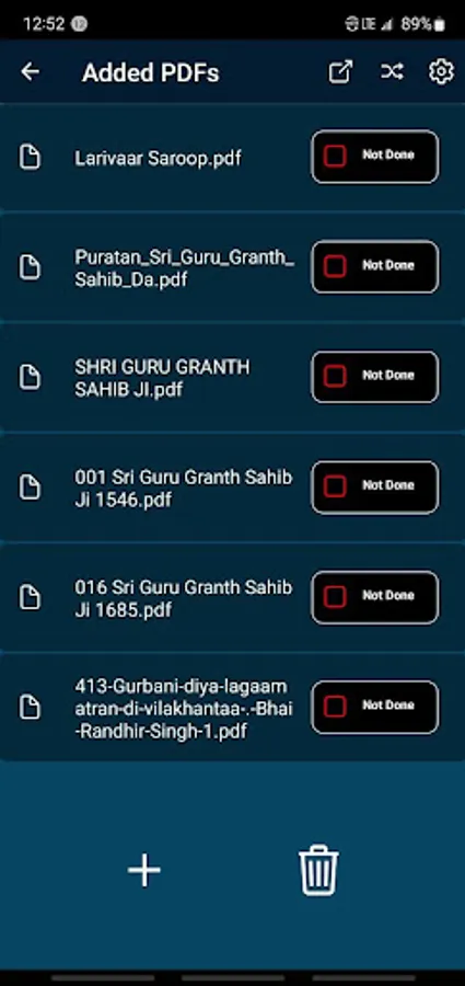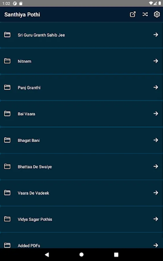 This app is a collection of PDFs that are hand selected to help people in the process of learning Santhiya(the learning of Sikh scriptures). It has all the texts one needs to learn, in order to be a sufficient reader of the Sikh texts.If a user desires to add a specific text, they may do so through the "add PDF" functionality. A user can also use the app as a PDF reader since any PDF you wish to view can be added to the app. Be aware of large PDFs that may take up storage on the device, as when you open the PDF, it will get cached on the device.