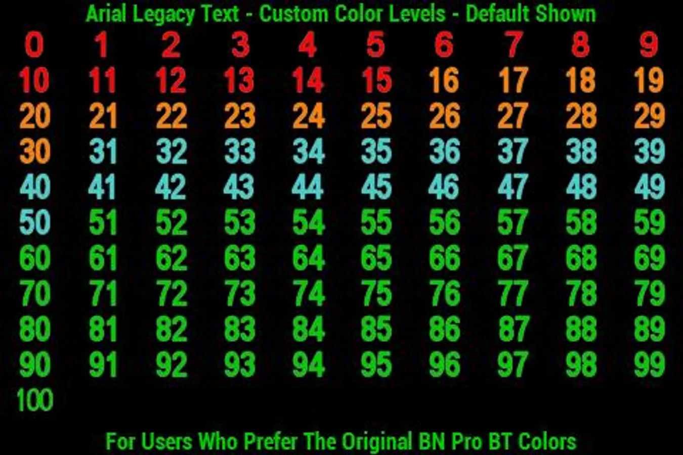 For users who prefer the original green color and Arial Narrow transparent font that was included in early versions of Battery Notifier Pro BT. This font may still be used along with the custom blue, orange and red text color level options in Battery Notifier Pro BT.