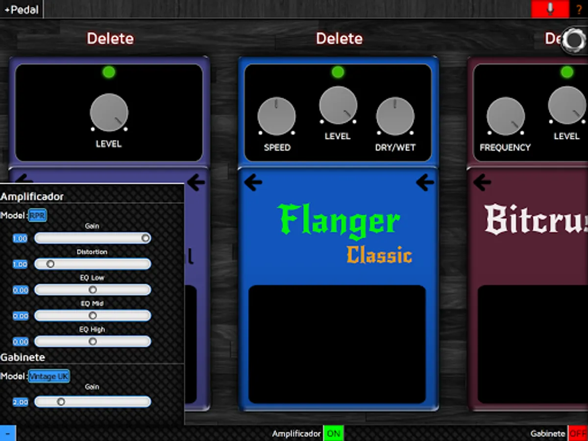 Effects availables: Digitalizer, Bitcrusher, Flanger-Darkmouth, Flanger-Manhattan, Flanger-Classic, EQ-Low, EQ-Mid, EQ-High, EQ-Peak, Fuxx-Boz, Fuxx-Bit, AutoReverb, Fuzz, Overdrive, Overscream, Chorus-cassic, Chorus-supercharger, Delay-mono, Delay-Stereo, 3-BandEQ, Reverb-classic, Reverb-catedral, Reverb-smallroom, Rinring, Convolver, Compressor, Limiter, The-Ripper, The-Bytter, Flanger-Silver, Flanger-Stereo & Sterefy.