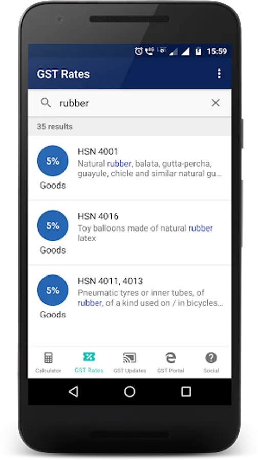 GST rates, GST notifications and HSN Code search have been made available in the latest version of the GST App. The HSN Code search feature works in offline mode as well and the GST Notifications and Circulars are updated by us in real time.
