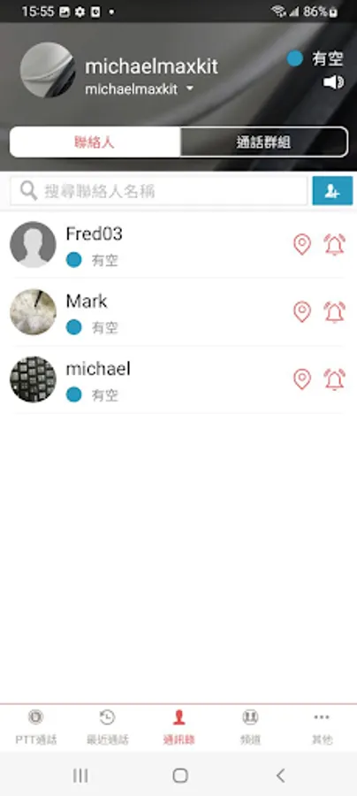 1-1 or chatgroup calls are possible, the voice content can be saved and played back, and a GPS map is provided to query the call localization.