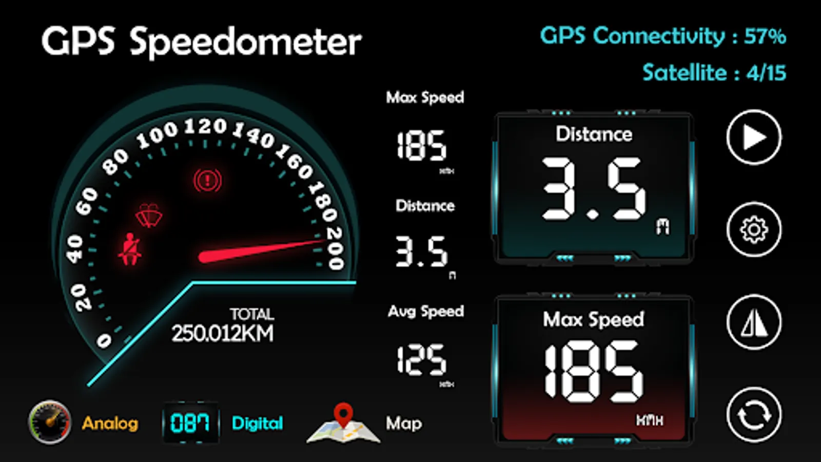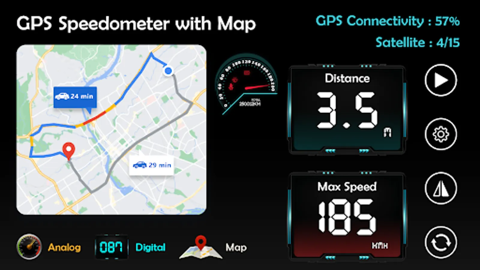 Analog speed meter: The analog speedometer odometer is designed to look like a classic speedometer and perfect for anyone who prefers a traditional display for car speed live meter using km/h or mph tracker.