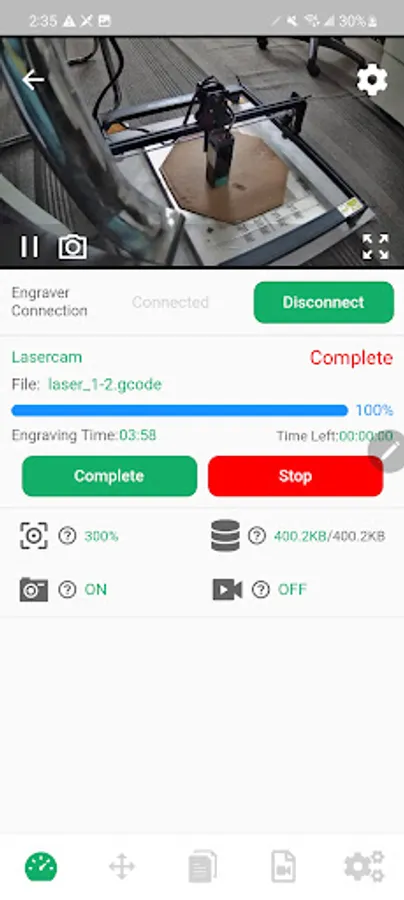 - Watch the real-time videos of engraving/cutting at HD / SD resolution