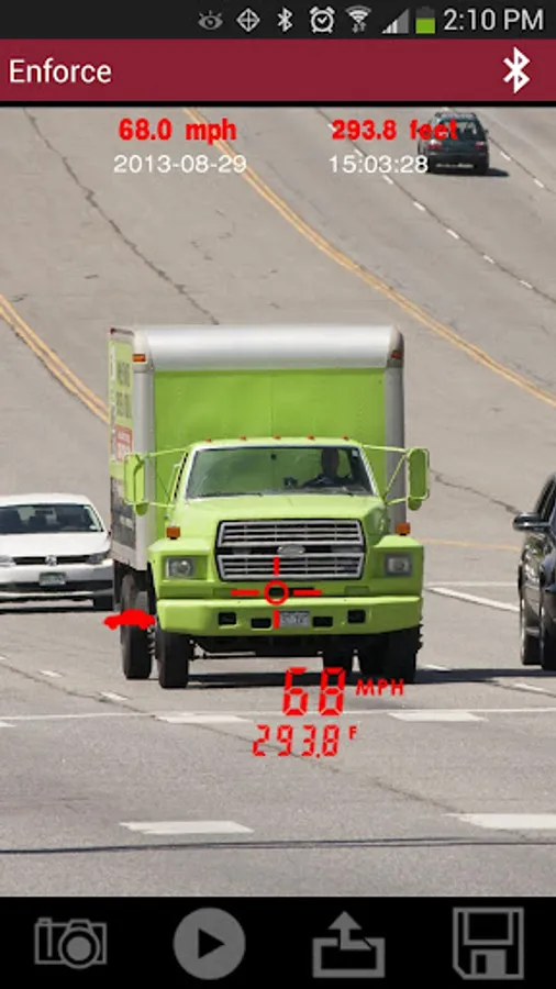 LaserSoft SpeedCapture App collects the time, speed and distance data as well as the option to input vehicle and violation information. It embeds all this data within the photo and can either be saved to your camera roll for texting and emailing or the whole data log can be downloaded onto a PC.