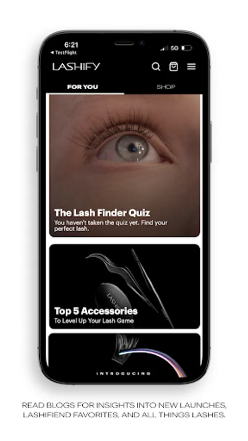 Shop Lashify’s cult lash system on our brand new app! Find your perfect lash looks with our curated Lash Maps. Customize your Lashify Membership and explore content that gives a deeper look into Lashify - plus exclusive behind the scenes content.