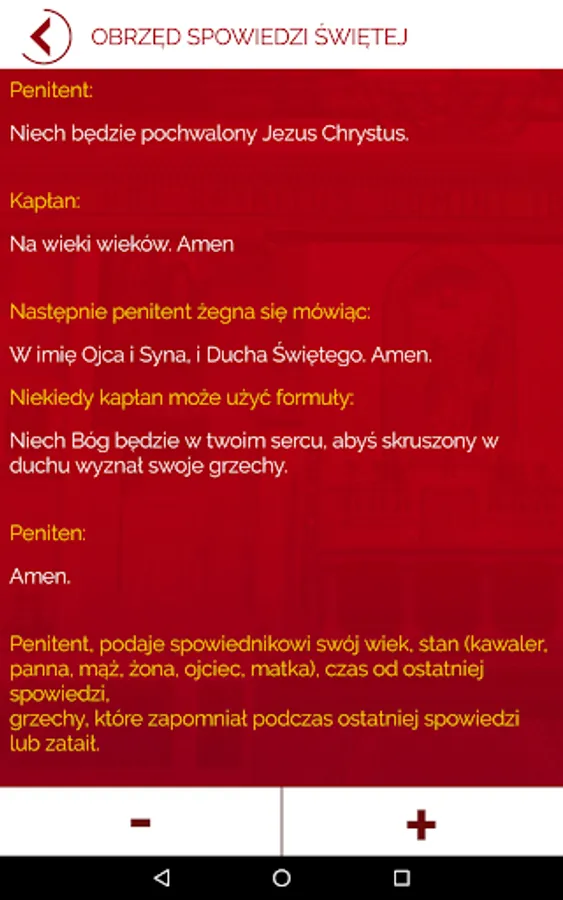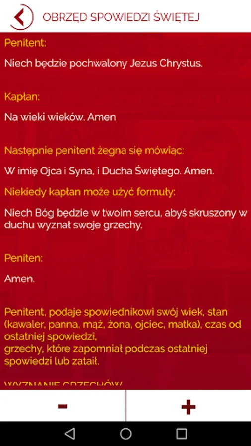 Examination of Conscience is an application that supports the faithful to prepare for the Sacrament of Penance. Properly and honestly made self-examination is a prerequisite for a good confession leads to reflection on the proceedings and the presence of God in everyday life.
