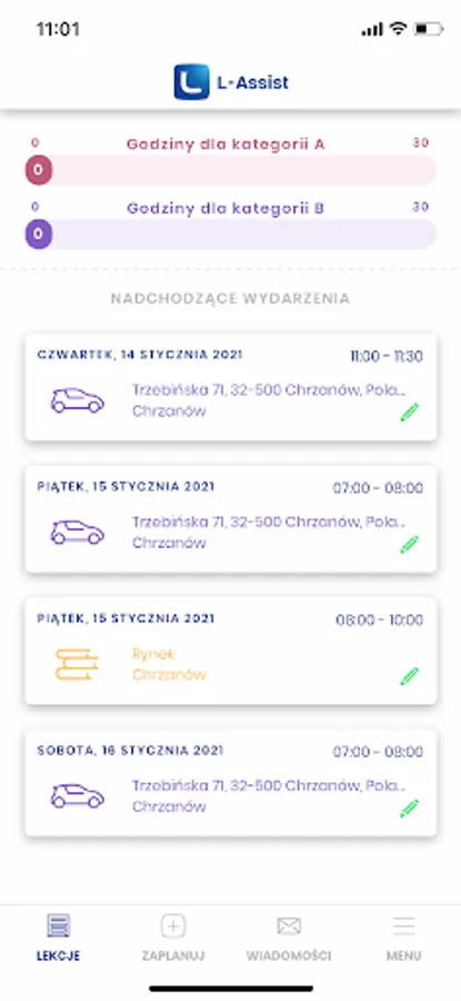 In L-assist you have access to the schedule of theory lessons conducted at your OSK. You choose the topic, date and time and then sign up for the lesson with one click. At the same time, the instructor who conducts the lecture receives an SMS that you will participate in the class.
