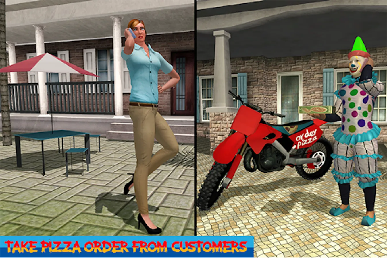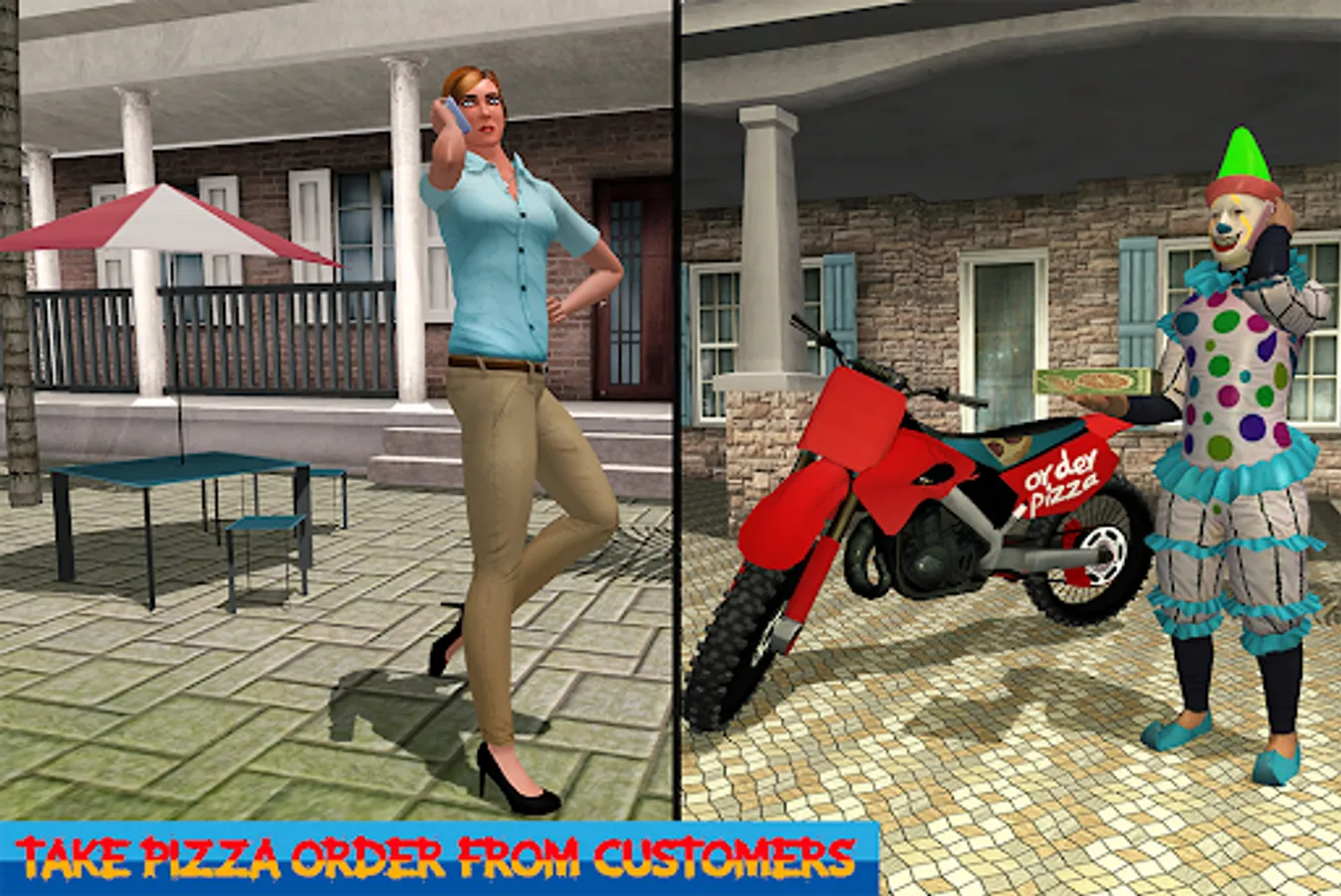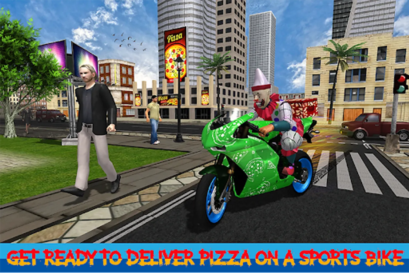 We are here to offer you latest pizza delivery game where you play as a scary clown and delivery pizza in the grand city with the help of your clown motorcycle in this scary clown boy pizza bike delivery simulator. Sale your best and delicious pizza like Bar.B.Q to the customers to increase your rating in the grand city.