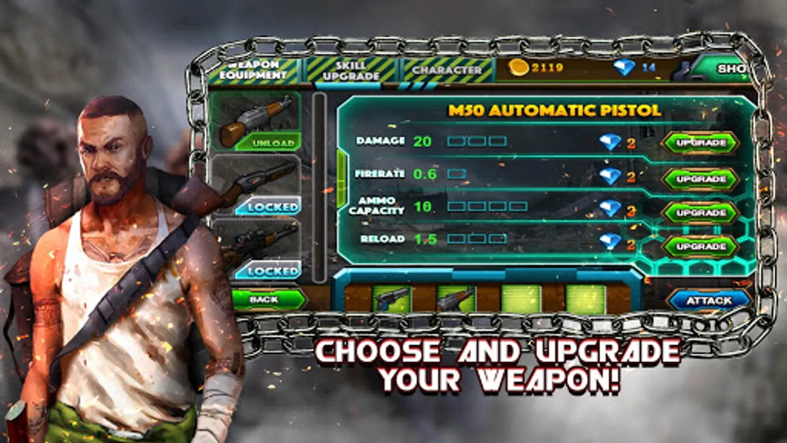 - Challenge yourself in different zombie rampage missions and upgrade your shooting skills along the way