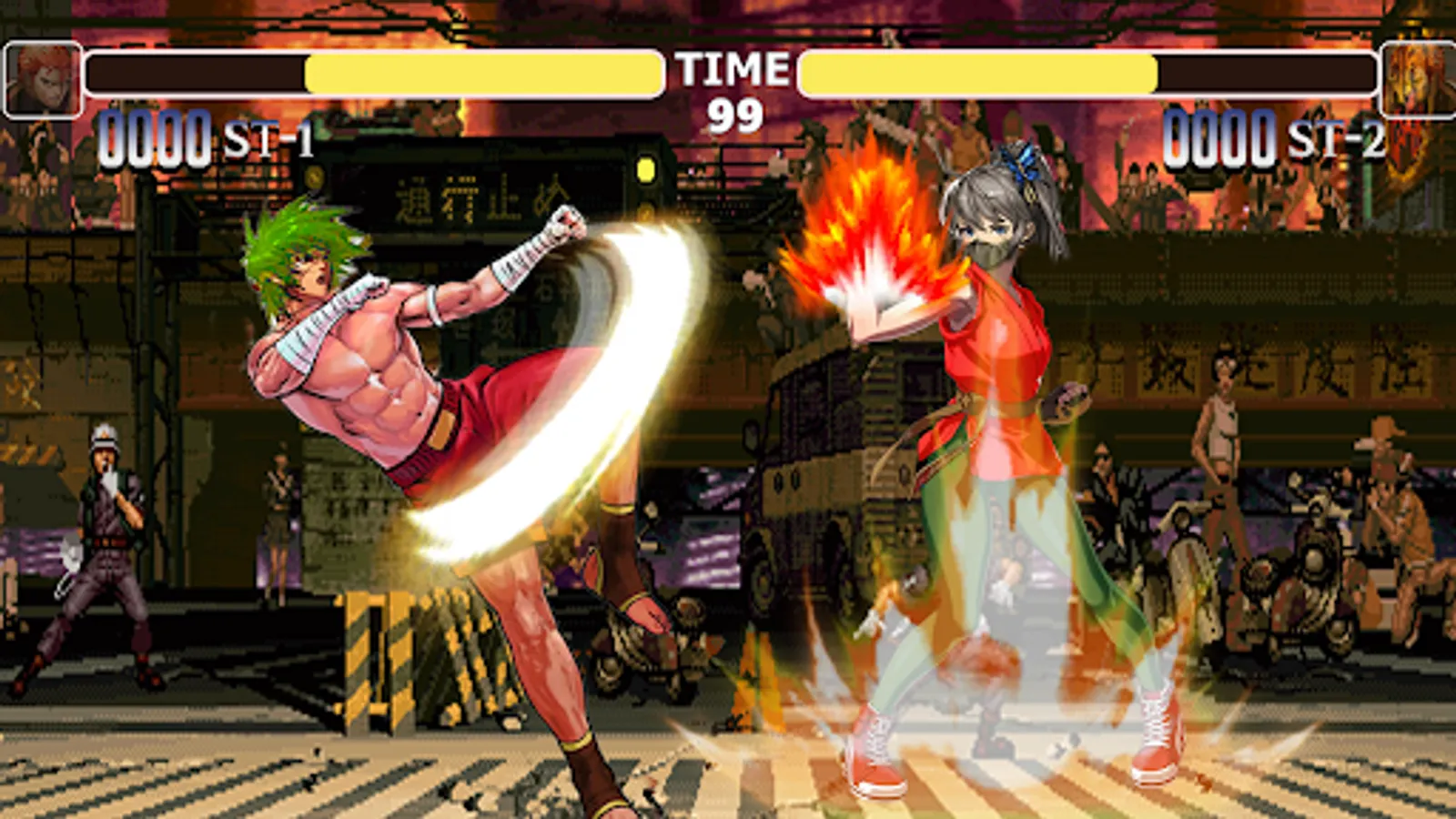 This is complete street old fighting against large group of enemies.