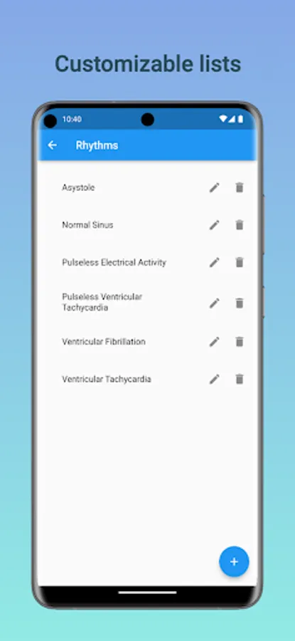 - Fully customizable Events, Medications, Cardiac Rhythm lists