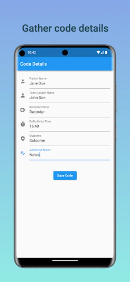 This application was made for medical professionals to keep track of key events during the management of a cardiac arrest.