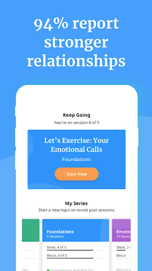 You get free access to our Foundations series—five sessions covering the basics of relationship health. You can also access all of our conversation-starters, relationship reminders, and single sessions for free.