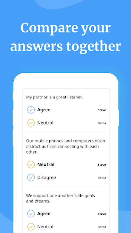 Featured on Good Morning America, NBC, and more, Lasting helps you and your partner nurture your emotional connection and repair relationship issues. Each session creates the space for you to reflect, unpack your thoughts, and discuss them with your partner. This enables you to understand one another better, work through disagreements, and connect in healthy ways. And it's all based on decades of research.