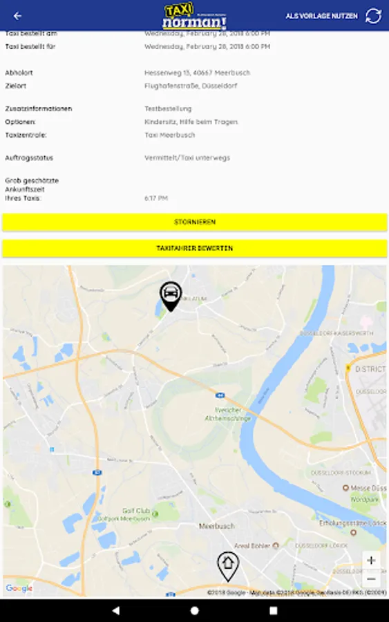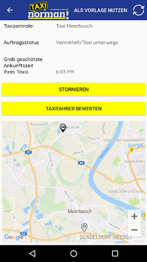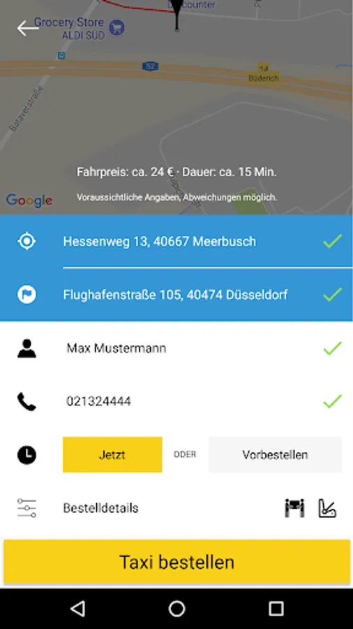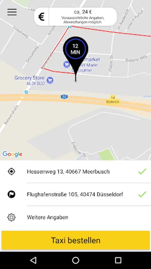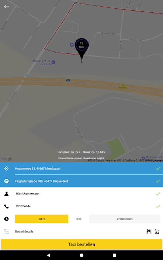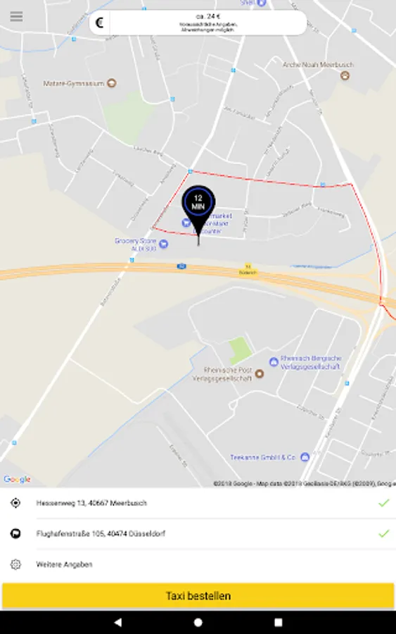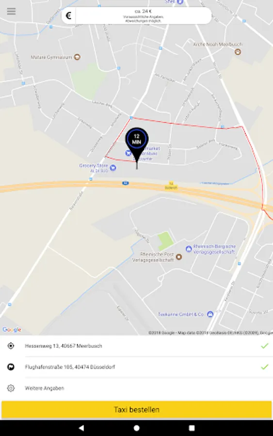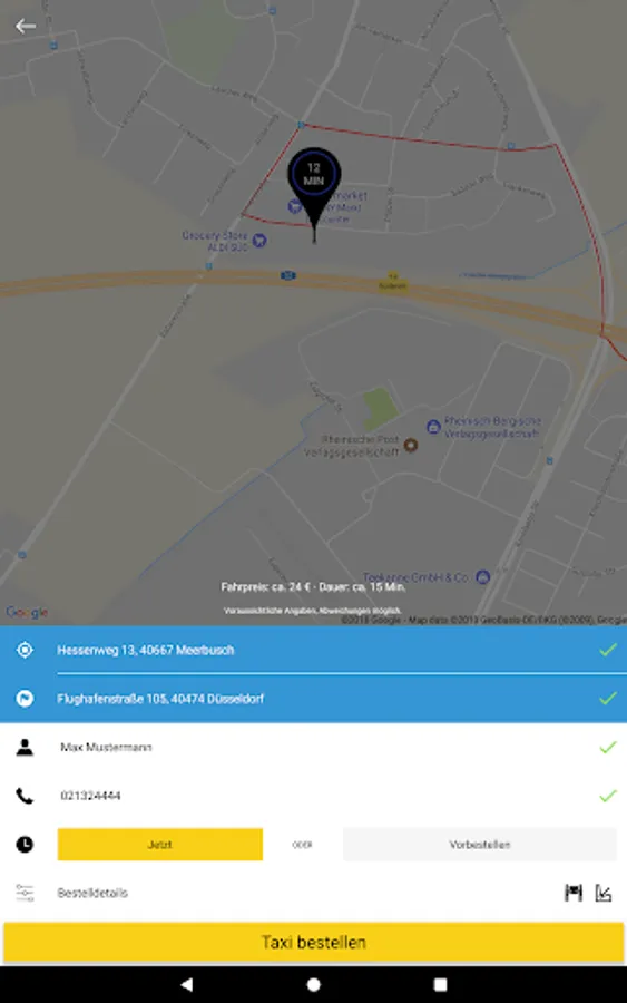With the Taxi Meerbusch app, you can now conveniently order a taxi from your GPS location or via an intelligent location search.
